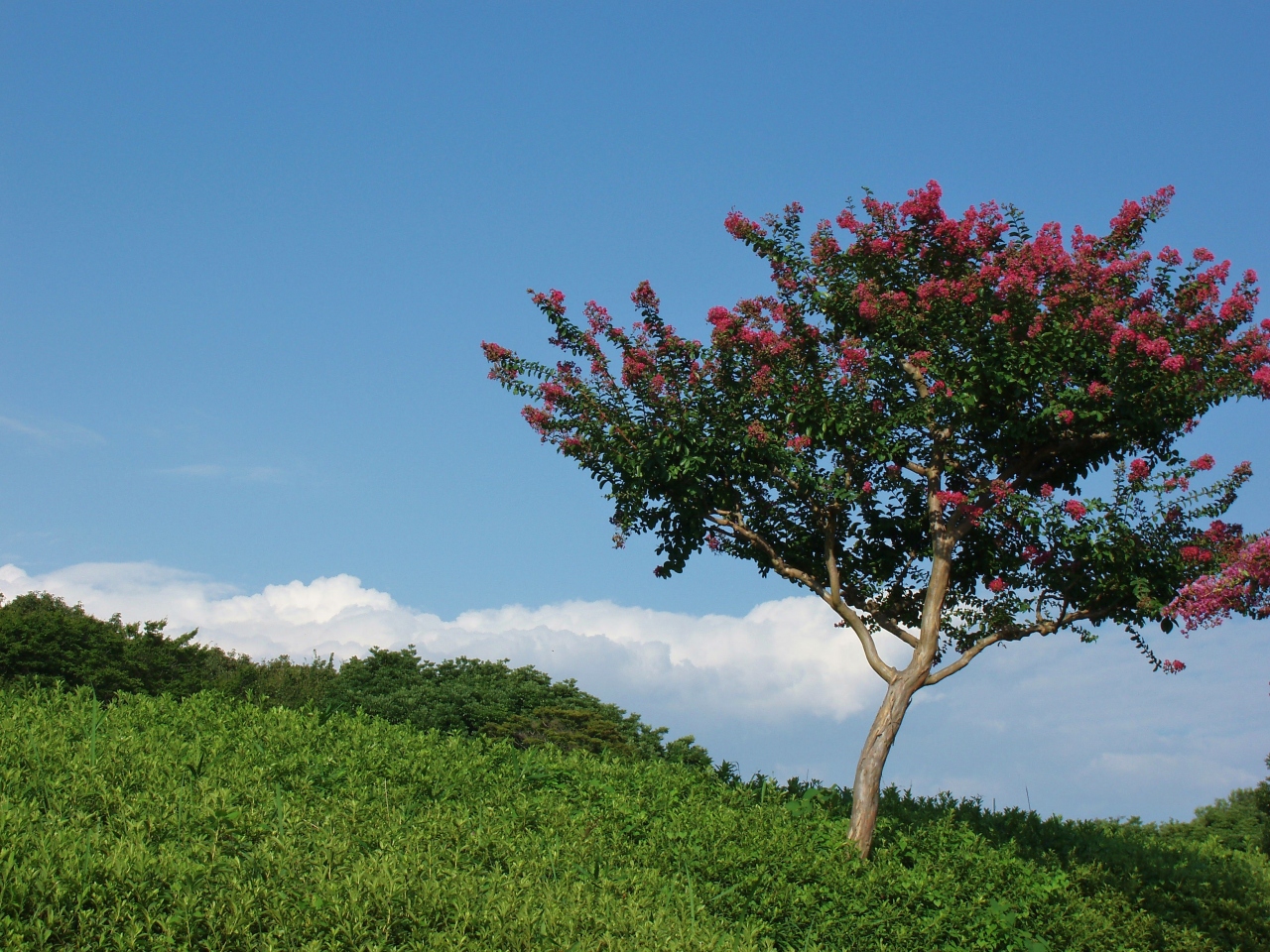 日本庭園内‘つつじヶ丘’では、サルスベリの花が満開。