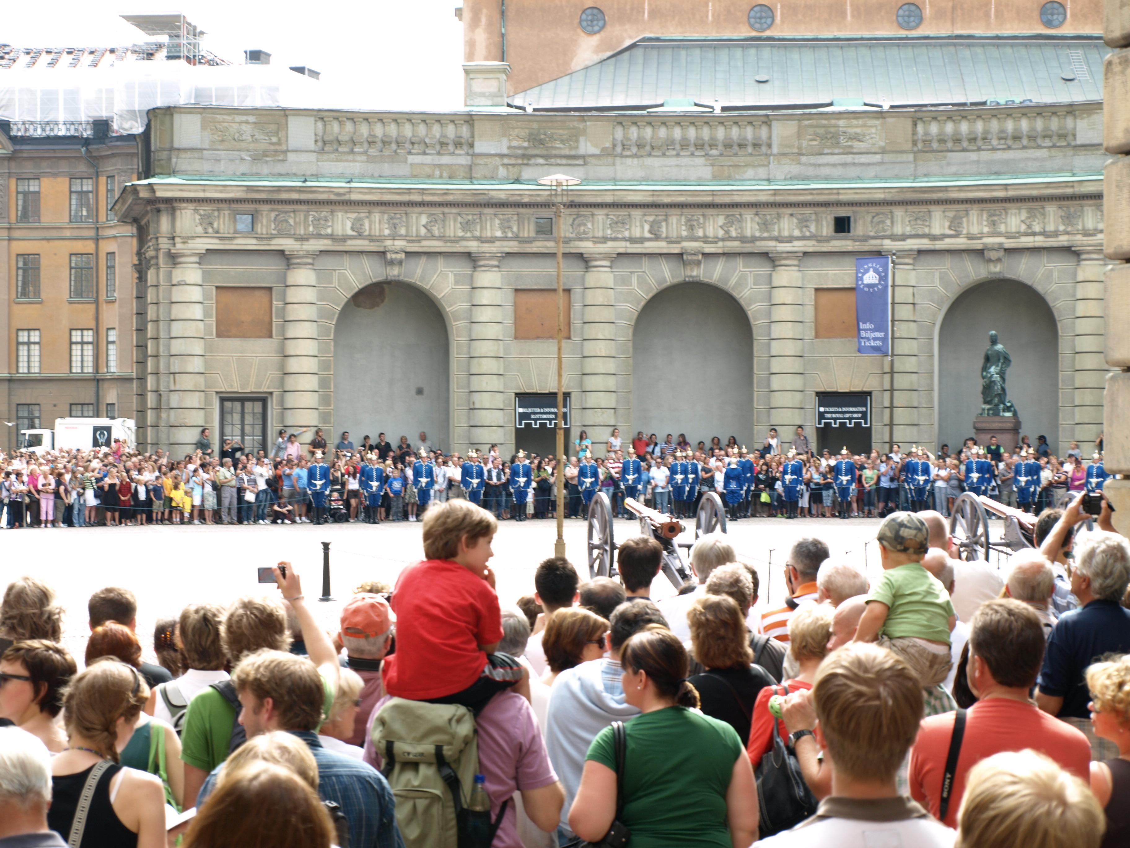 裏庭?みたいなところで交代式の準備をする衛兵さん達です。 -