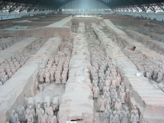 6000体もの兵馬俑が整然と並ぶ様は、圧巻です。 -
