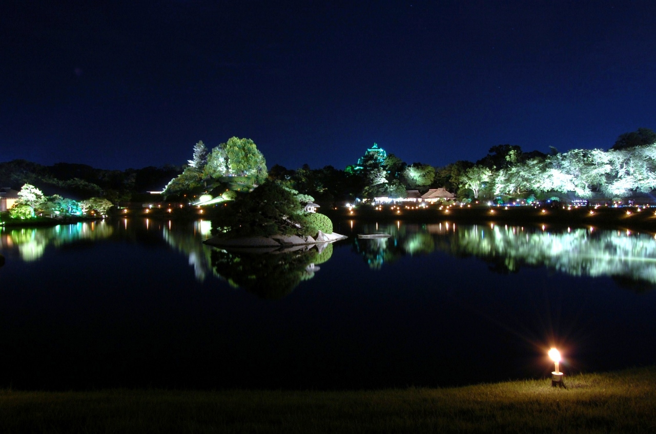後楽園の夜景写真幻想的で雰囲気がいい写真に出来上がっていますね。