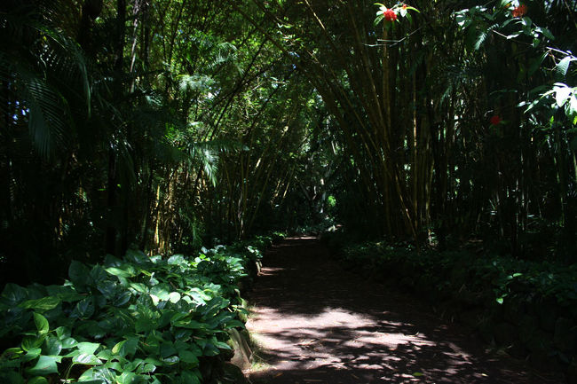 National Tropical Botanical Gardenのひとつ、Allerton Gardenへ行った。2時間半のガイド付きツアー。なんと$45。まずはトローリー(バス)に乗って奥地へ向かった。