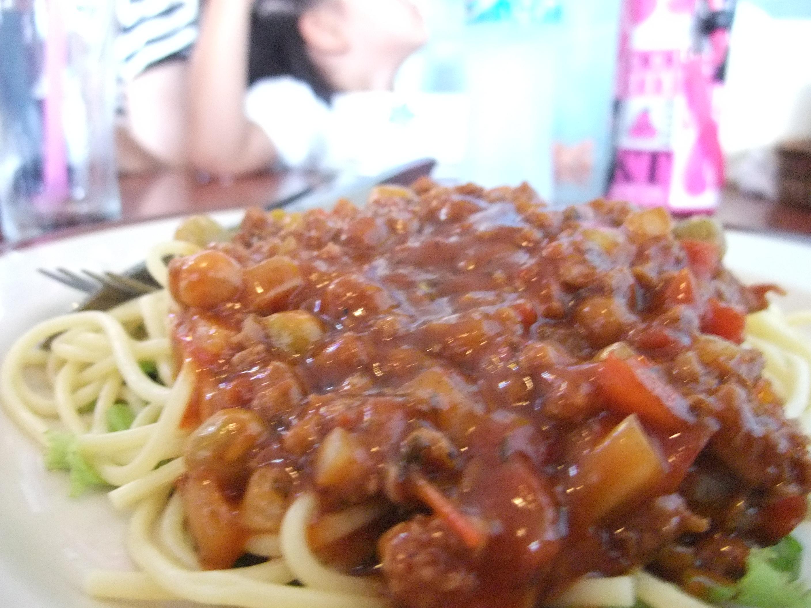 娘が食べたのは、例のうどんみたいな麺の炒めもの。 -