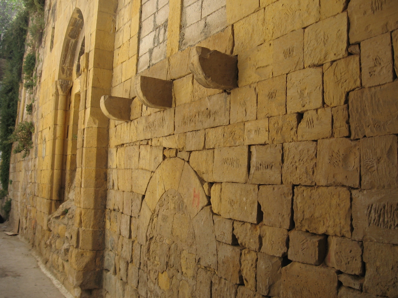 黄色がかった石(特産)で造られた入口。