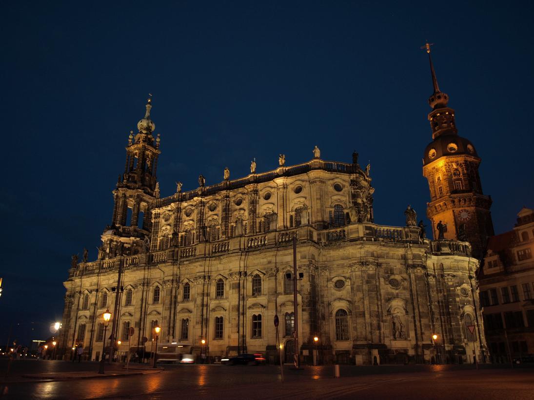 カトリック宮廷教会。昼間見た姿もよかったですが、明かりに照らされた姿もまた格別でした。