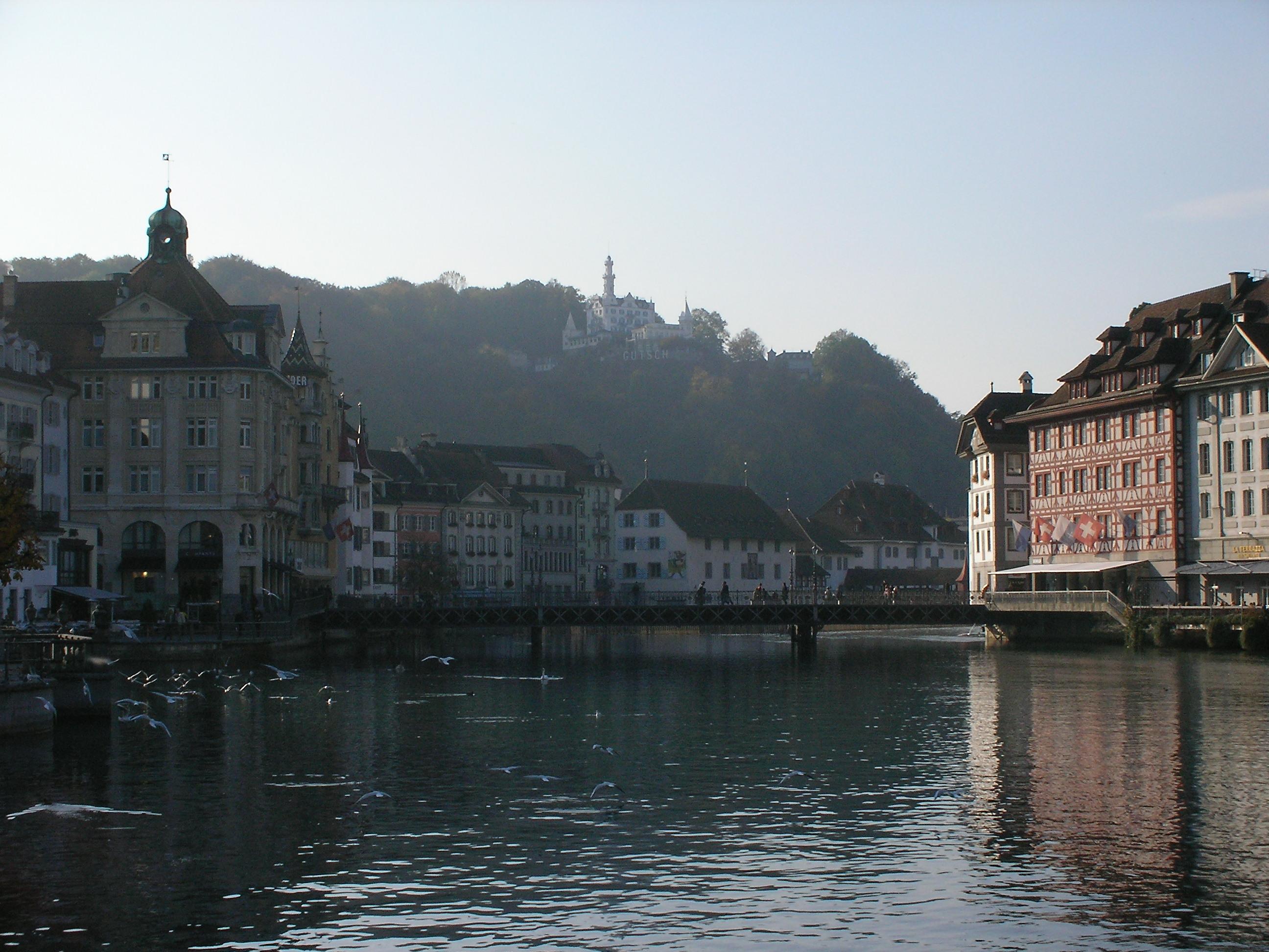かねてからカペル橋を見たいと思っていた私にとって、どこへ来るともよく分からずに辿りついただけに驚いたのと同時に嬉しい限りである。ウルスラはよく来るらしく、見どころを案内してもらった。