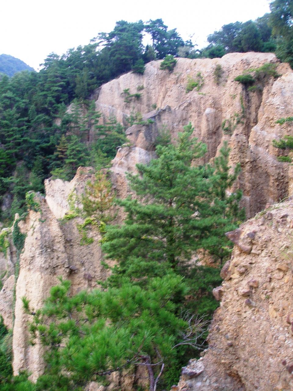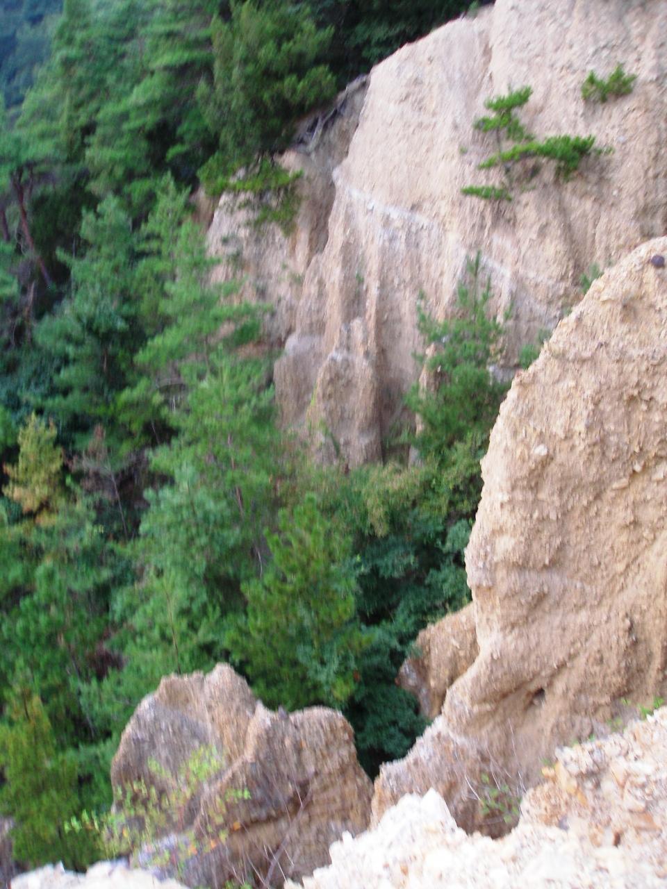 頂上から眼下に望む土柱
