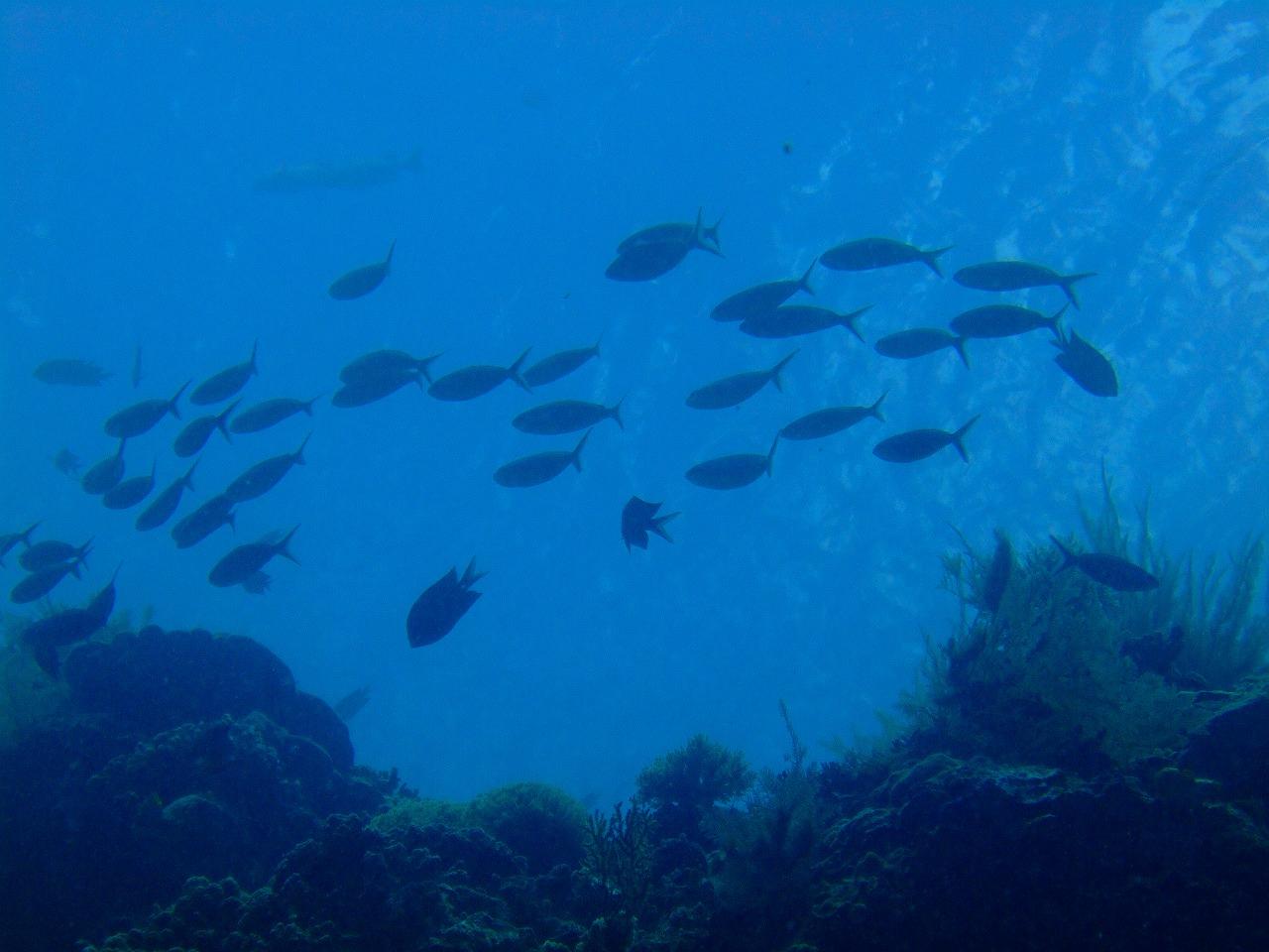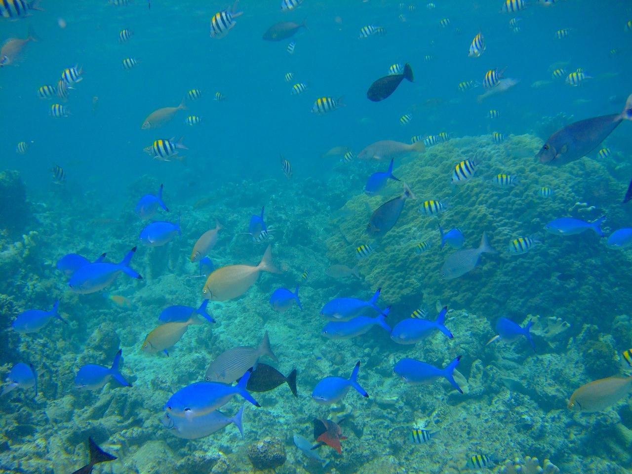 淡い水色の小魚の群れ