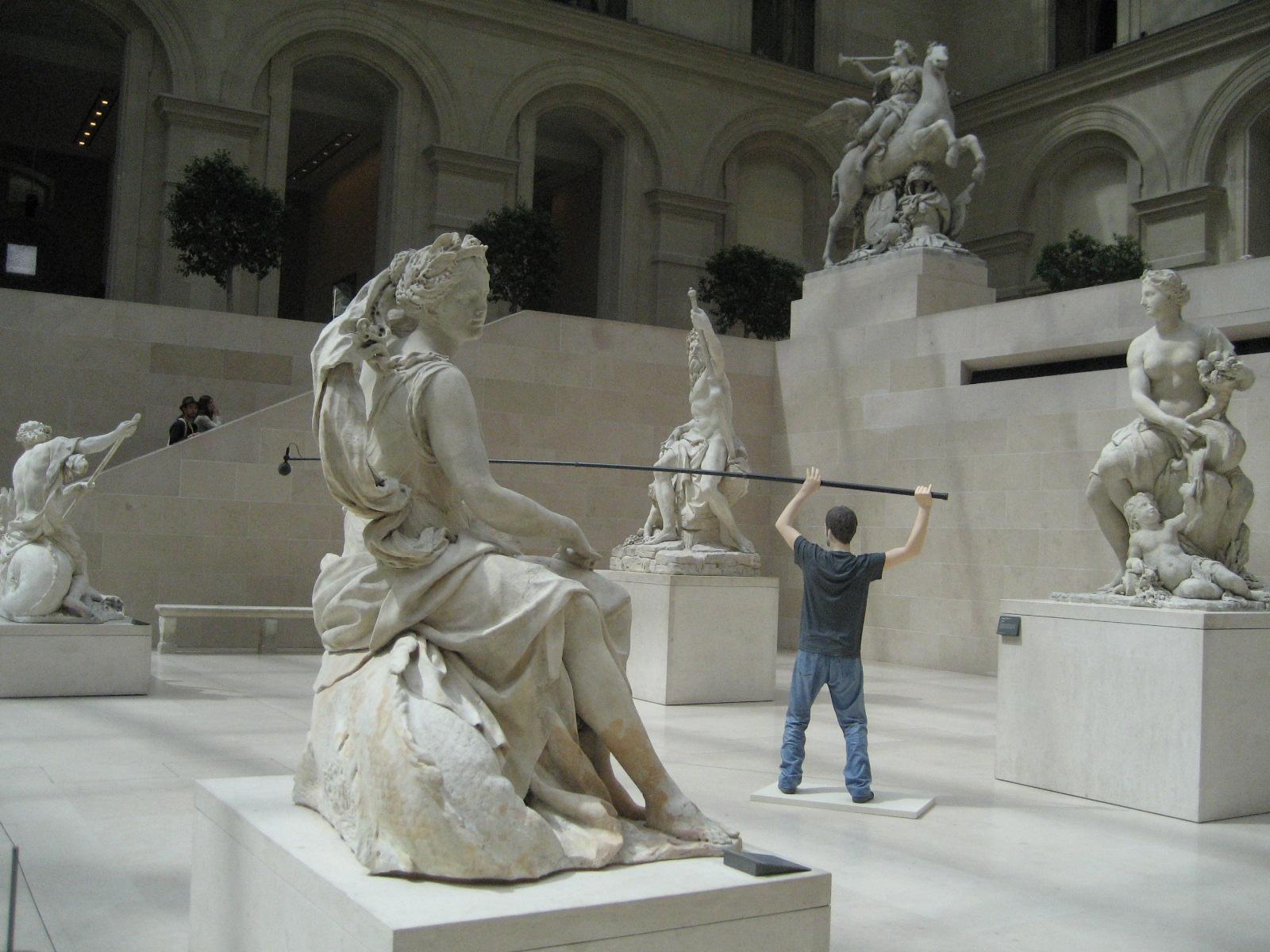 我想花個半天的時間走馬看花即可,以整個羅浮宮豐富的館藏,大概三天也逛不完,隨意一點負擔沒這麼大。跟團的人,導遊把羅浮三寶−蒙娜麗莎的微笑、勝利女神像和維納斯介紹完,就算大功告成,可以拍拍屁股走人了。自助旅行的我則是看到不想看為止〜