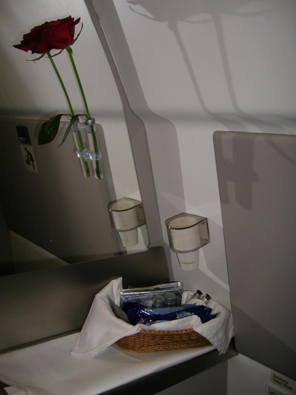 食事時になると、シート脇に薔薇の花を飾ってくれます。
