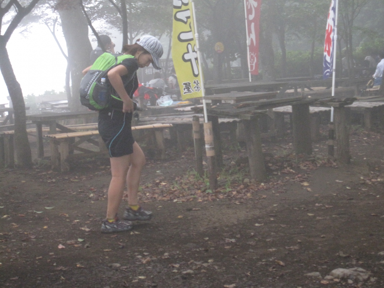 登山道の向こうから物音がすると思ったら、カップルのトレイルランナーが凄い勢いでやってきました。