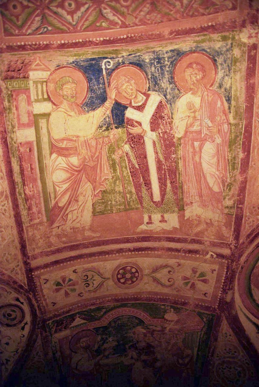 クリプタ・デリ・スカーヴィ(Cripta Degli Scavi)は中世中期のクリプタ(地下礼拝堂)で、美しいフレスコが残されていました。