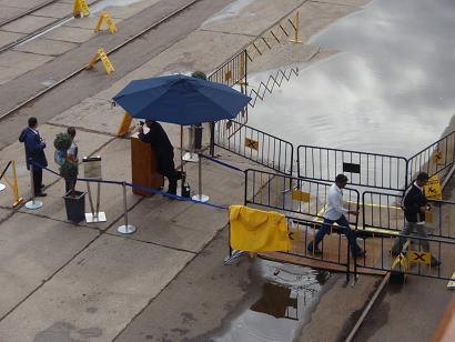 帰りのバスへ移動中結婚式の新郎新婦を見た。