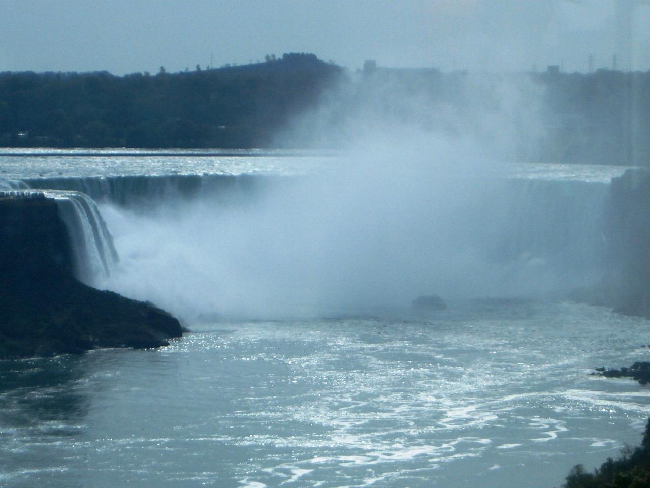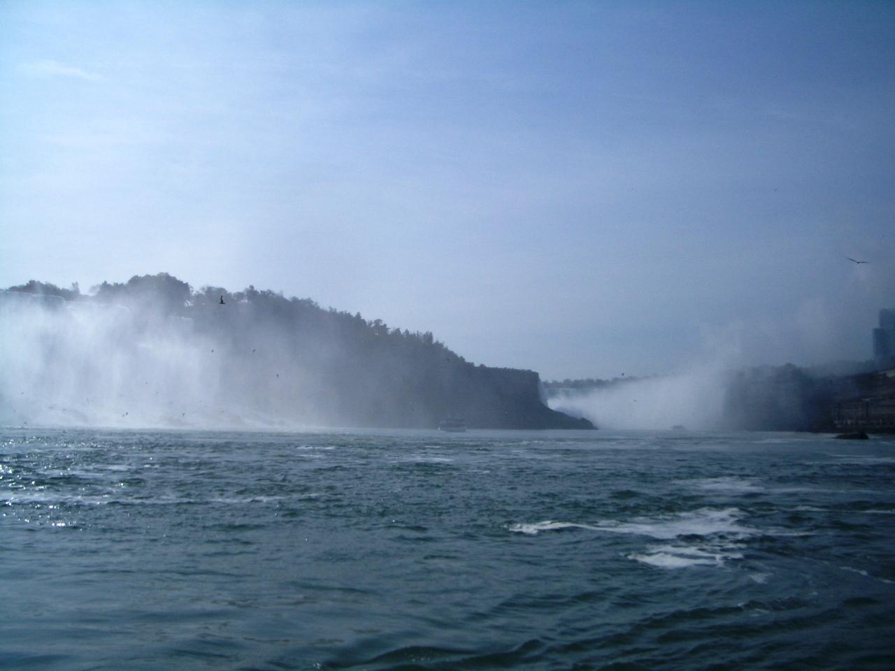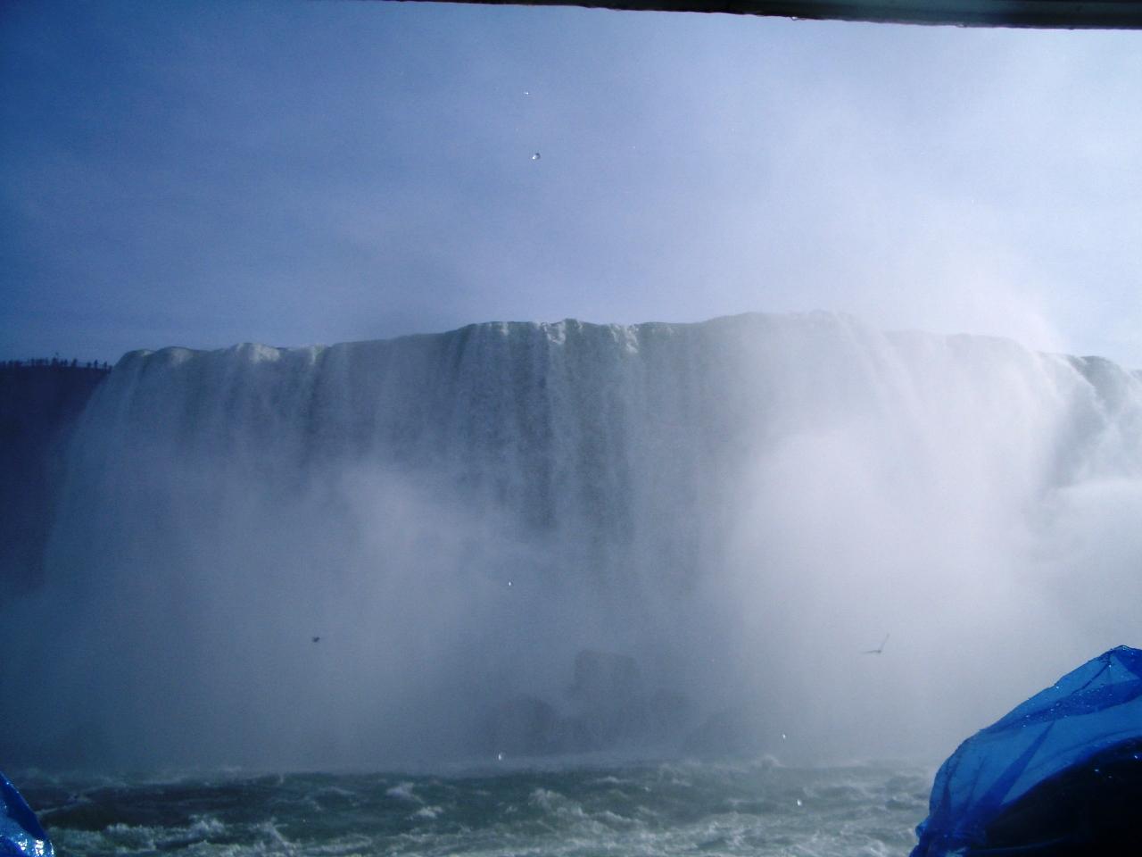 アメリカ滝は下から良く見えた。しかし、カナダ滝は水しぶきがすごくて目を開けていられない。特にビデオ、カメラはうまく撮れない。
