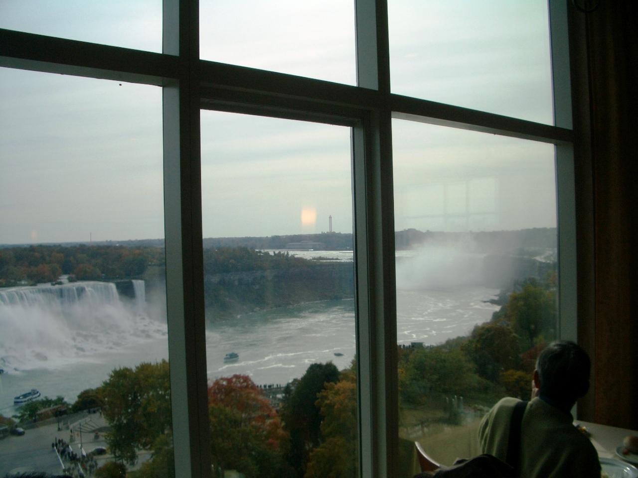 ナイアガラは雨が降り続いたため水量が多くアメリカ滝、カナダ滝とも素晴らしい眺めであった。ただ水量が多いためカナダ滝の近くは水しぶきがすごくてほとんど前が見えない状態であった。
