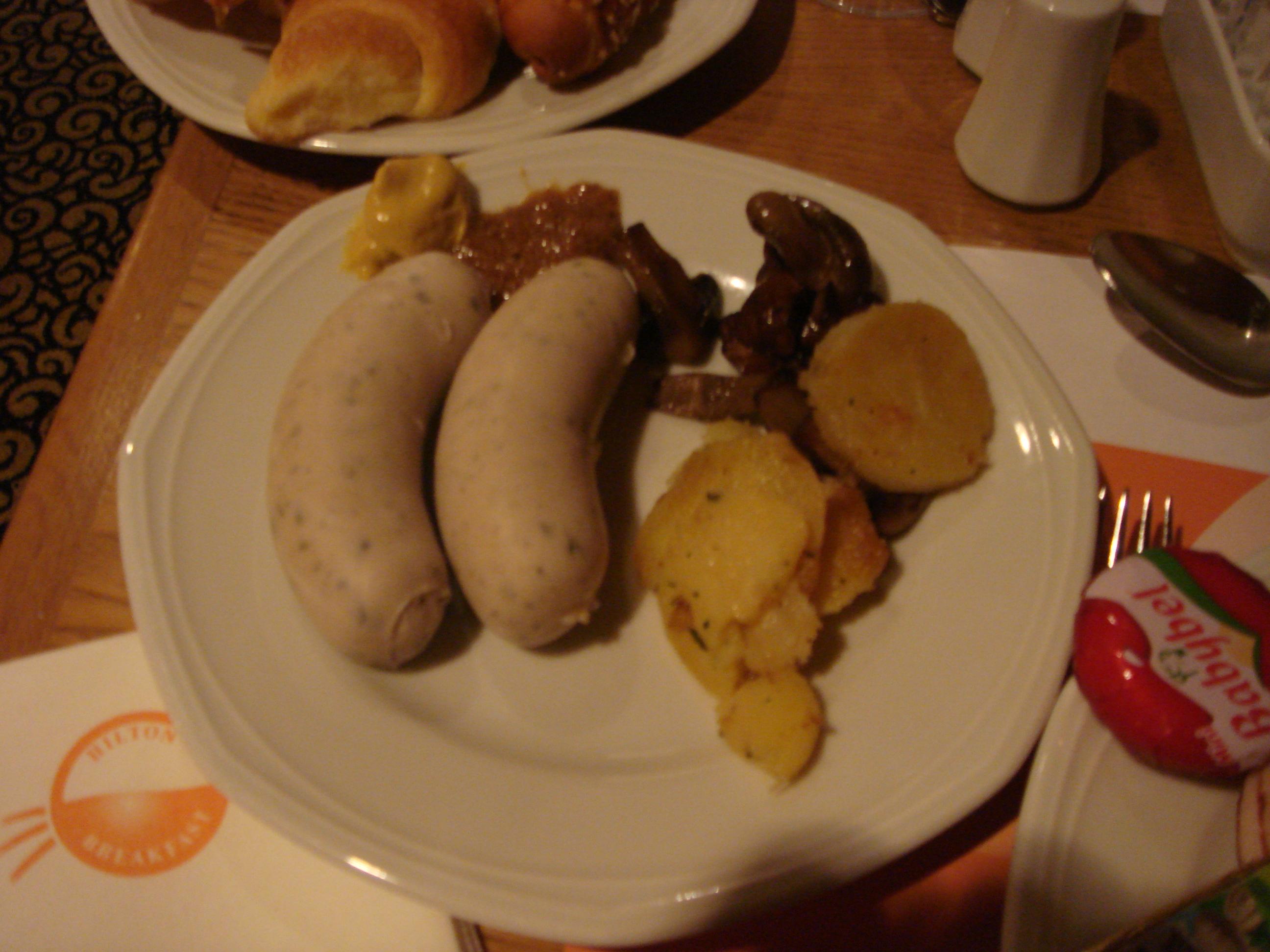 朝食です。フランクフルトに来たら、これは食べねばと思っていた白ソーセージがもうありました。