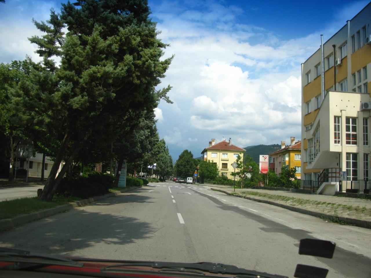 Glagoevgradの町へ,ブルガリアは国道から町への標識がすごく少ないので,町中に入るのに一苦労.ガイドさんの運転だが,やはり2回ほど人に聞きながら町中に入る.標識の少なさ,キリル文字のみの標識の多さから,本当に一人でレンタカーにしなくてよかった.もう何年かしたらEUの1カ国なので国際標識も増えるだろうが.