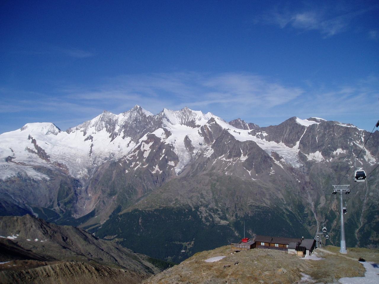 アルプフーベル、テーシュホルン、ドムを中心にフェー氷河。