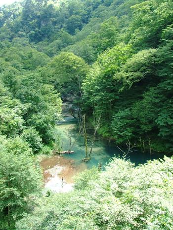 奥四万ダムをさらに上流へと車を走らせると見事な水景色が見られます。