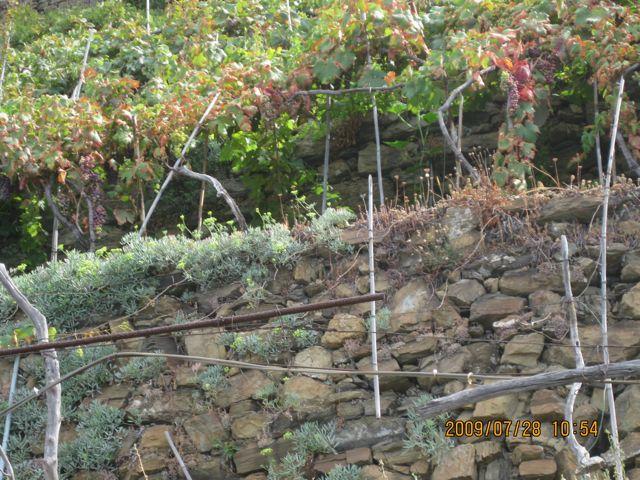石積みのブドウの段々畑はチンクェ・テッレらしい風景です。下の息子はブドウが大好物なので、「ぶどう! ぶどう!」と大声で叫んでいました。