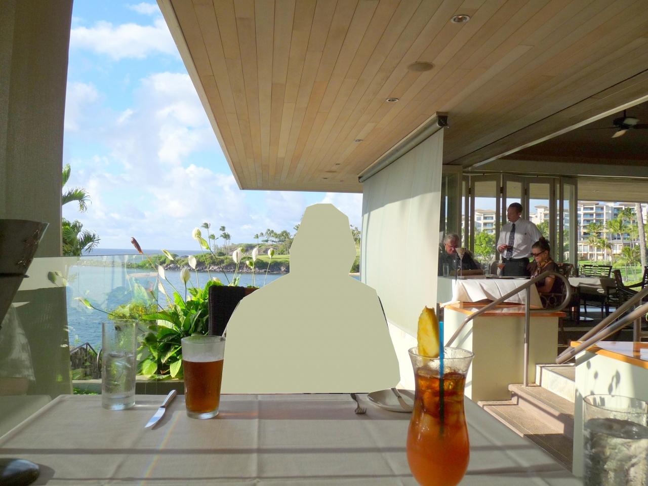 カパルアベイに面した眺めの良いレストラン「メリマンズ」を前日に予約しておいた。