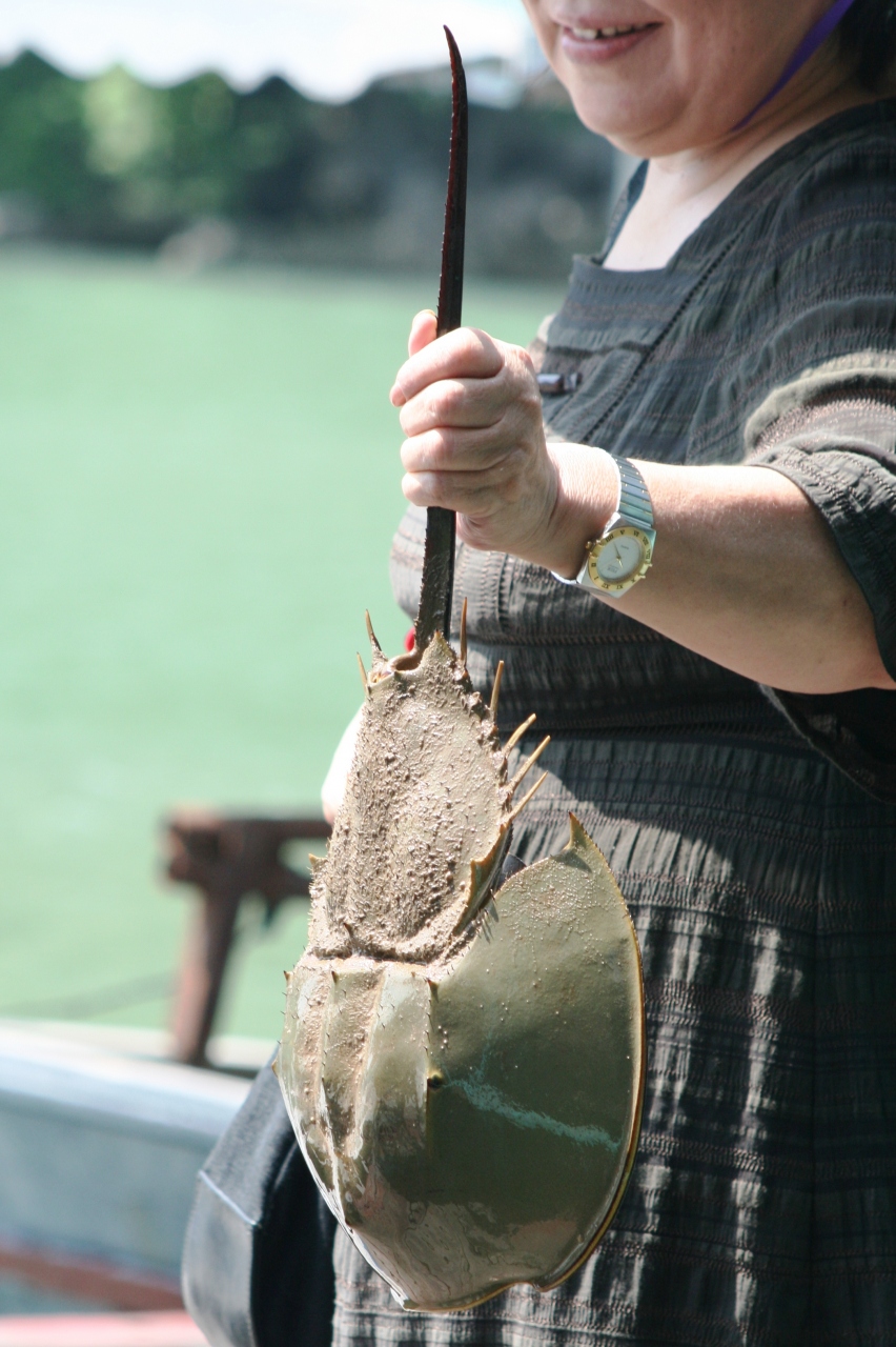 日本では、以前には瀬戸内海に多く生息していましたが、今は環境汚染などで、激減しているカブトガニです。古生代からその姿がほとんど変わっていない、生きた化石として、学術的な面から貴重とされます。