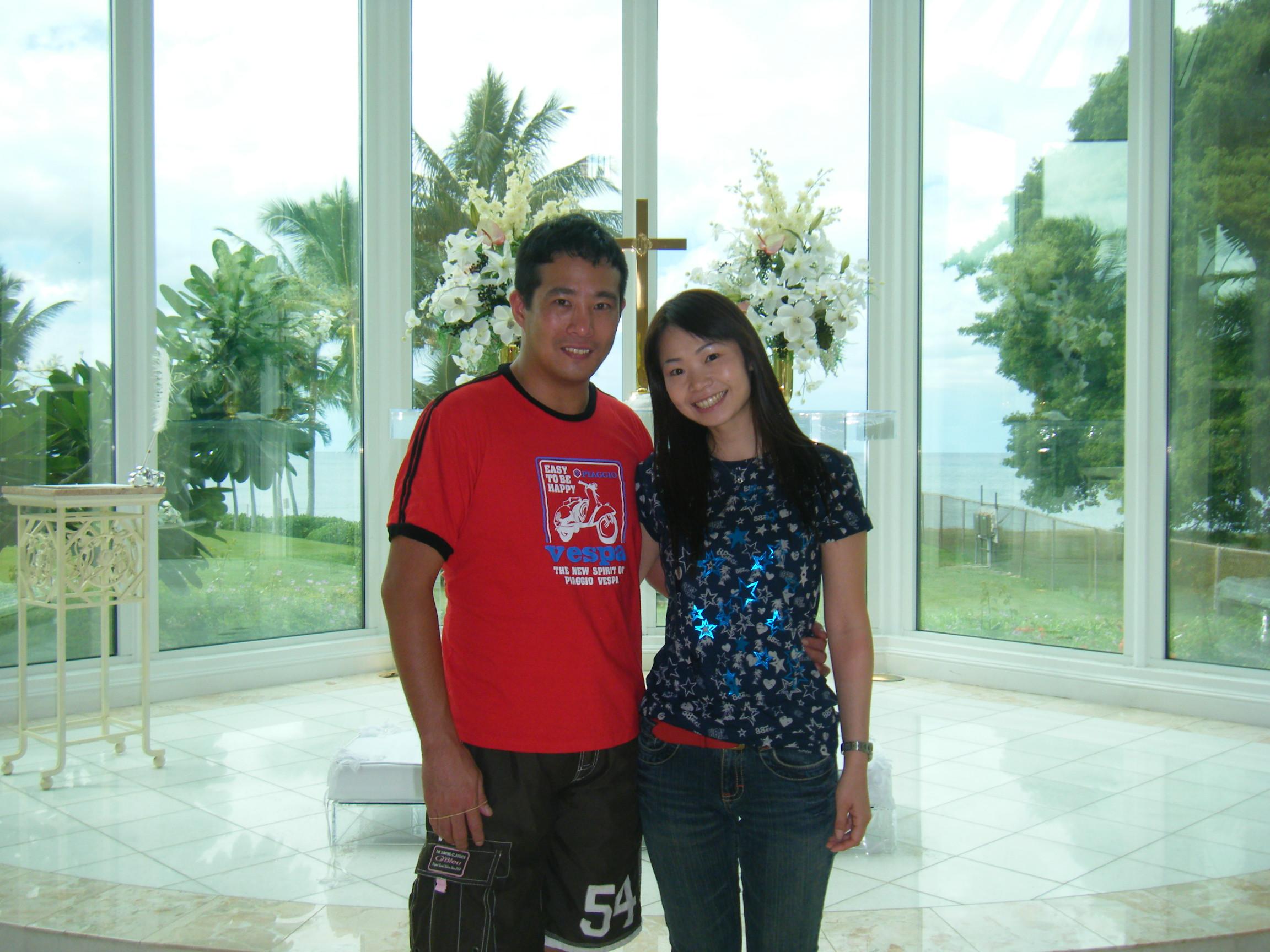 美男美女のカップルが式を終えてラグーンで記念撮影していました。 -