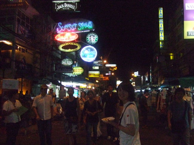 トゥクトゥクに揺られてたら、道の向こうに蜂の群れが!?なにかの宣伝で蜂のかっこしたお姉さんたちがバイクで走ってたそうです。