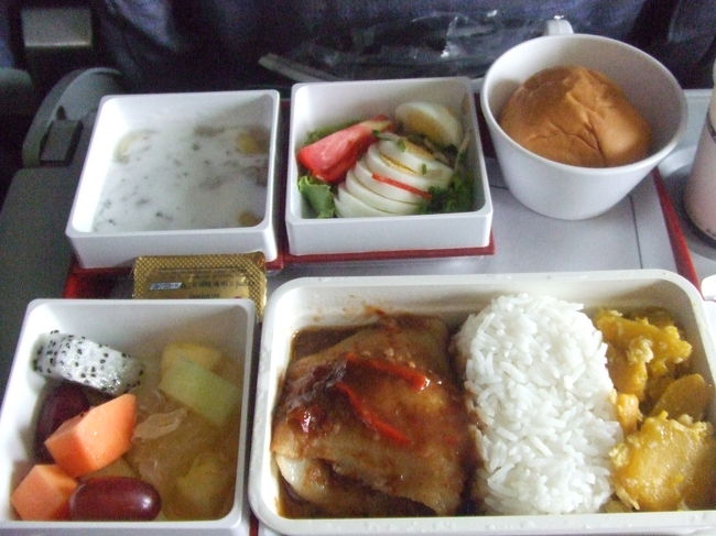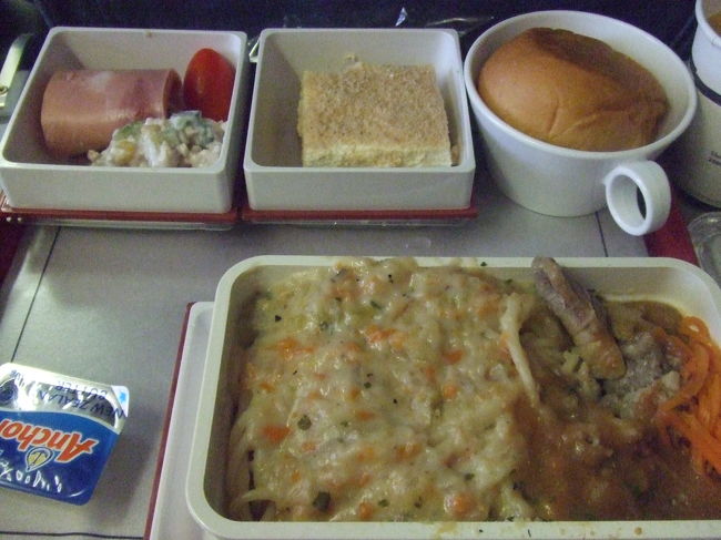 そしてそんな短い時間でも機内食は出ます。(冷え冷えだけど。。。)