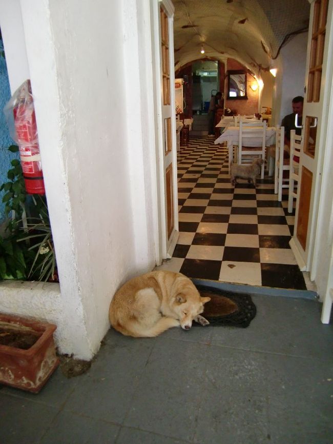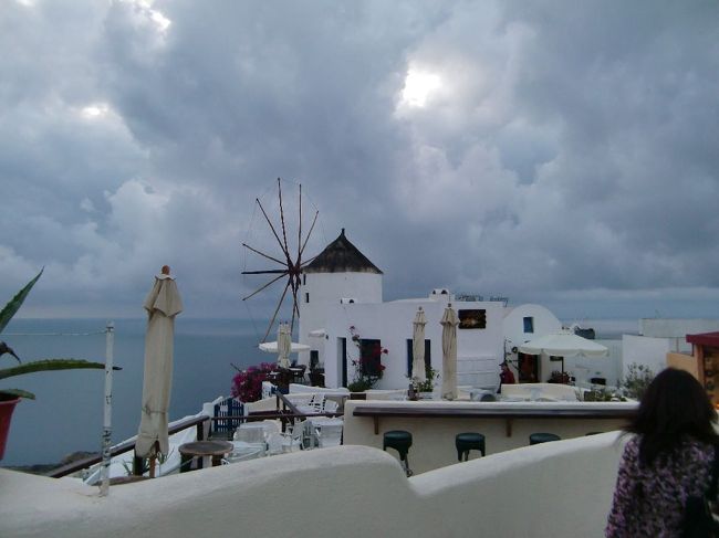 小雨になったので、行ってみたかったシーフードレストランのお店もあるし、夕日はダメもとでイアに行くことにしました〜。
