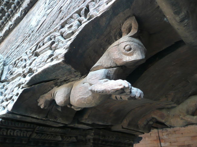 1階の回廊のと屋根をつなぐ腕木部分の神々の木造彫刻は見もの。 -