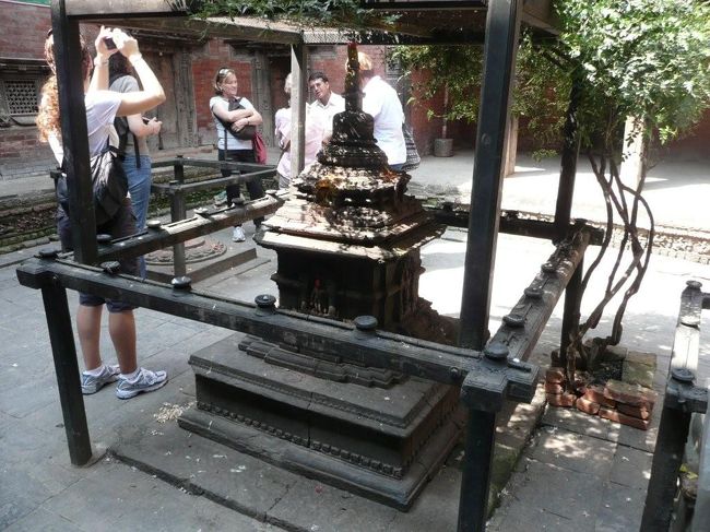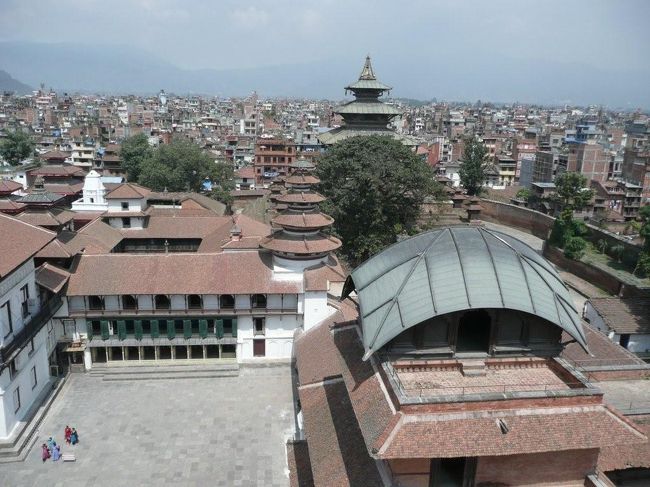 王宮の中の広場の1つであるナサル・チョウク。向こうにに見える円錐形の建物はパンチ・ムキ・ハヌマーン寺院。