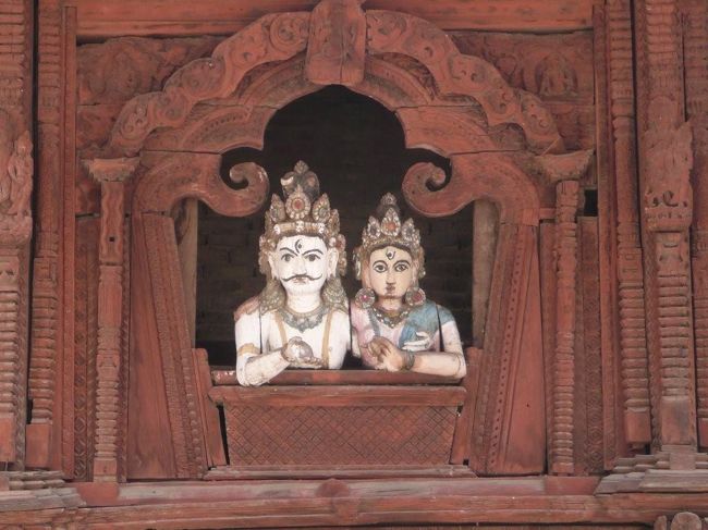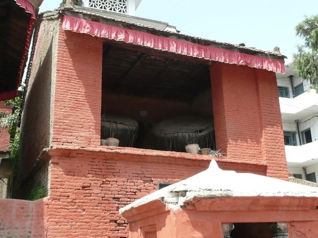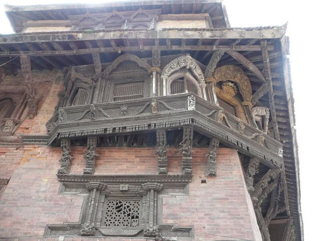 建物は1757年のマッラ王朝期の建設。壁はレンガ造りで窓枠や柱型は木造のもの。 -