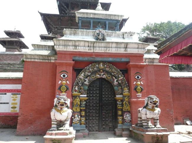 マッラ王朝時代の王宮として使用されていた。入口にはこの様に2頭の獅子像によって守られている。 -