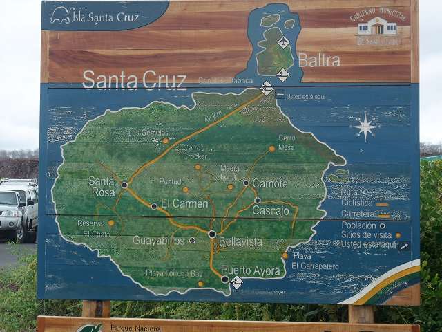ここからバス、艀、バスでサンタクルス島へ。ホテルは島の南端にある。