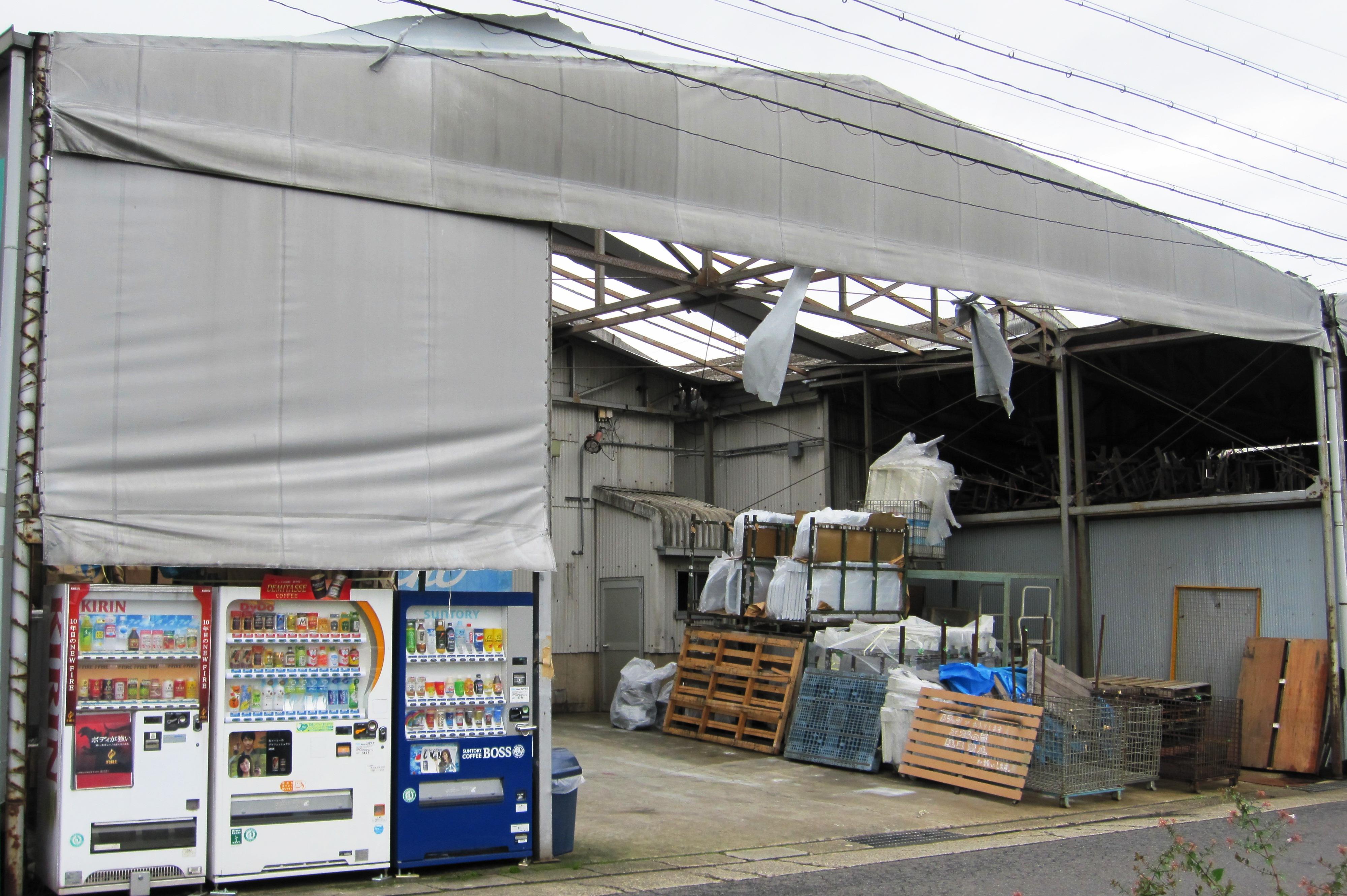 テント布で葺かれた町工場の屋根です。ずたずたに引き裂かれていました。寿命が来ていたのかも知れません。