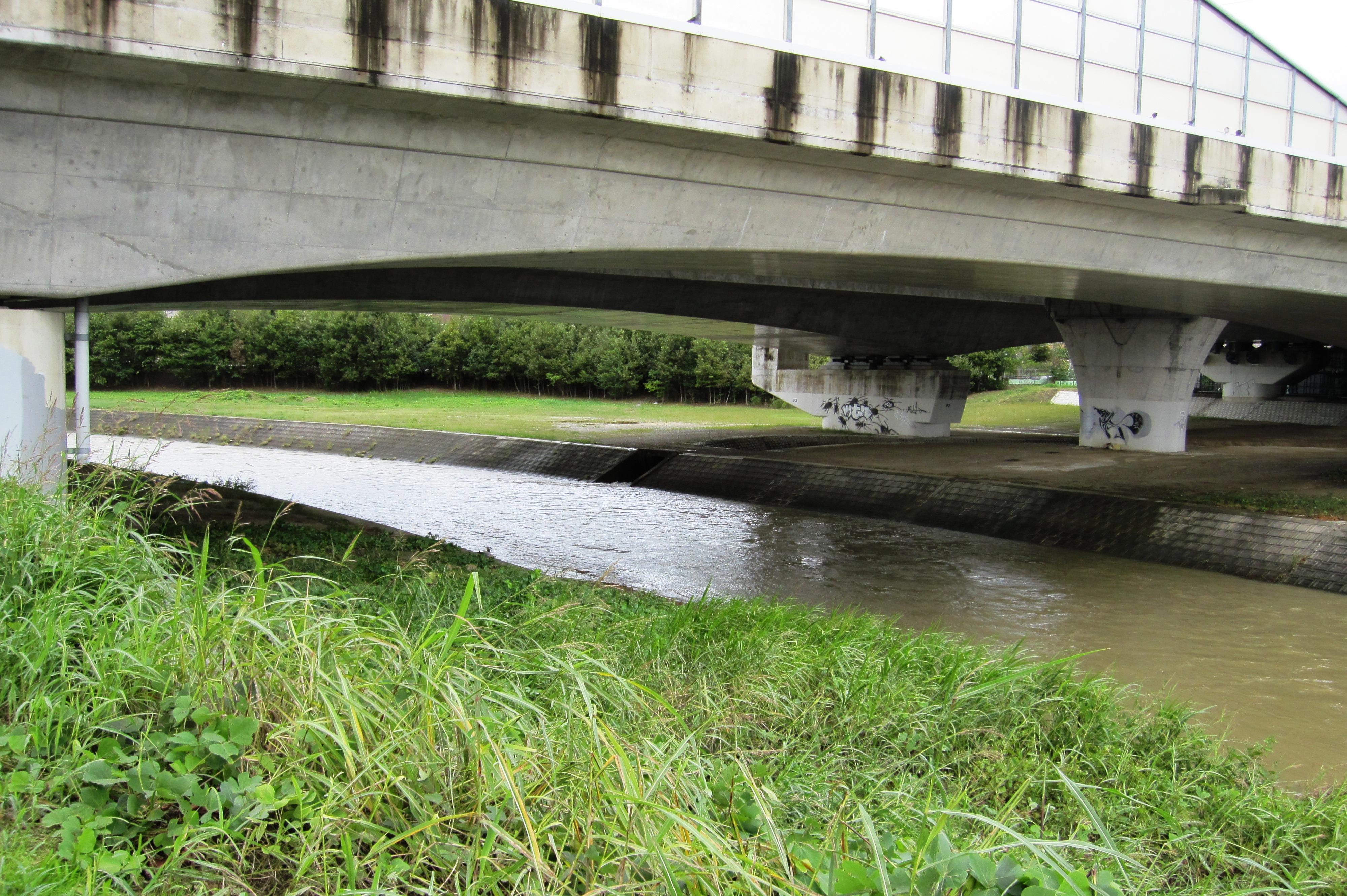 台風18号が過ぎ去った後の天白川の流れです。台風の足が速く、大雨の時間が短かったためか、荒々しい傷跡はありません。