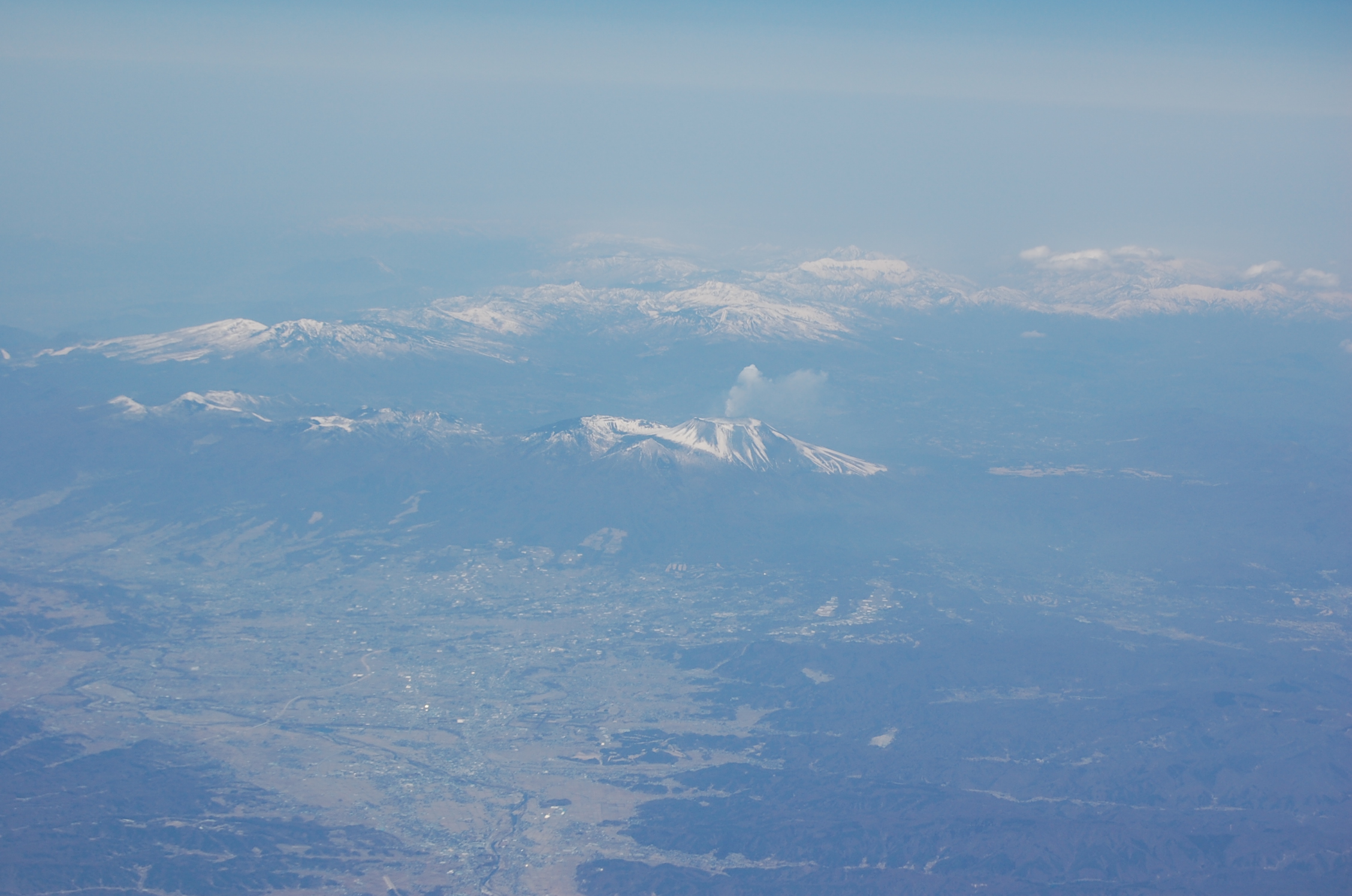 飛行機は通常、通路側しか座りませんが空いていたので、窓側に座り久しぶりに空撮できました。表紙の噴煙を吐く浅間山です。北アルプス、白山も雪が多く残りまだまだ冬のようです。