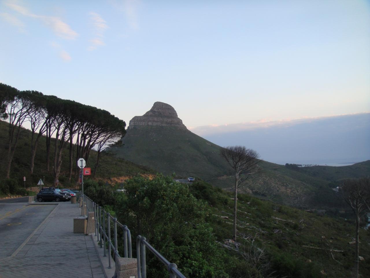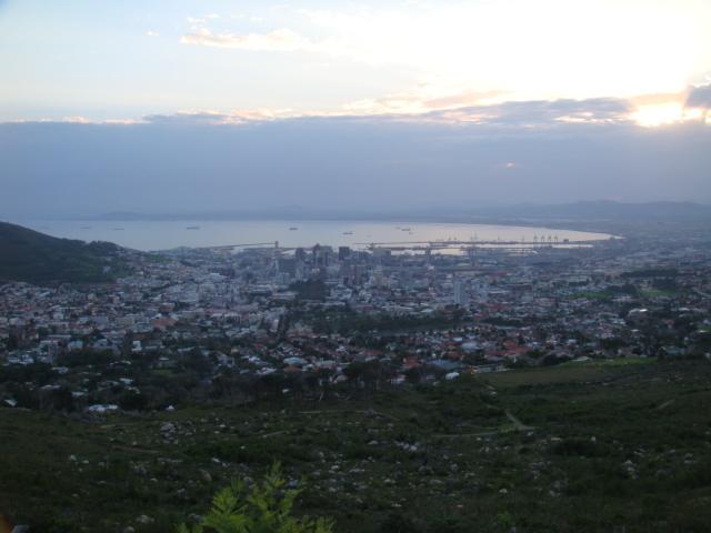 山道から、ケープタウンの街が見えます。