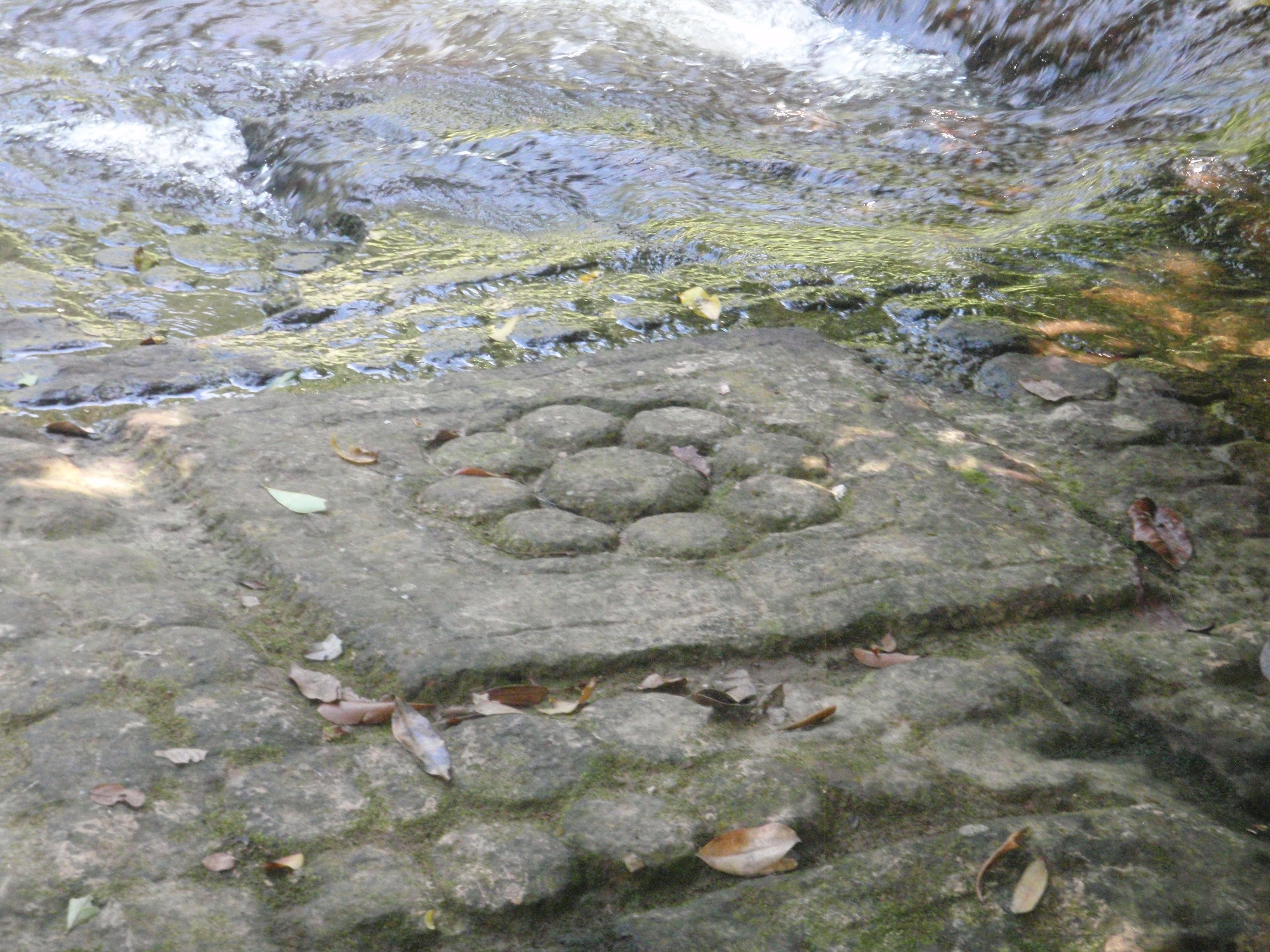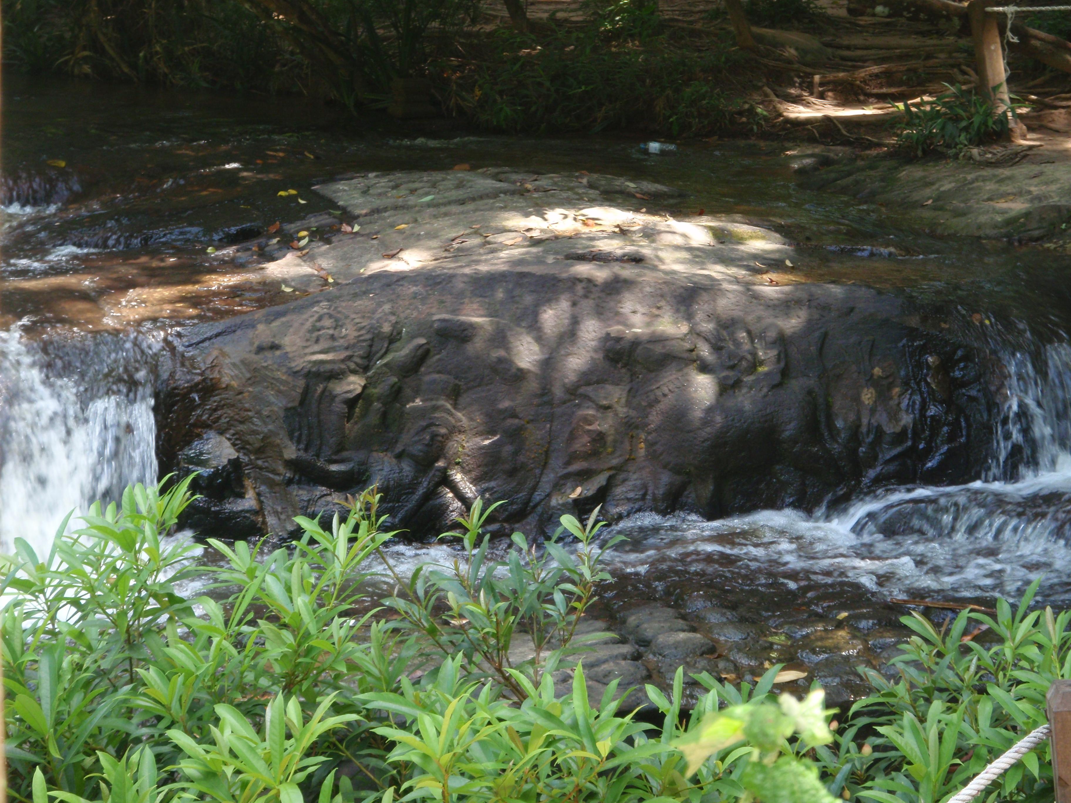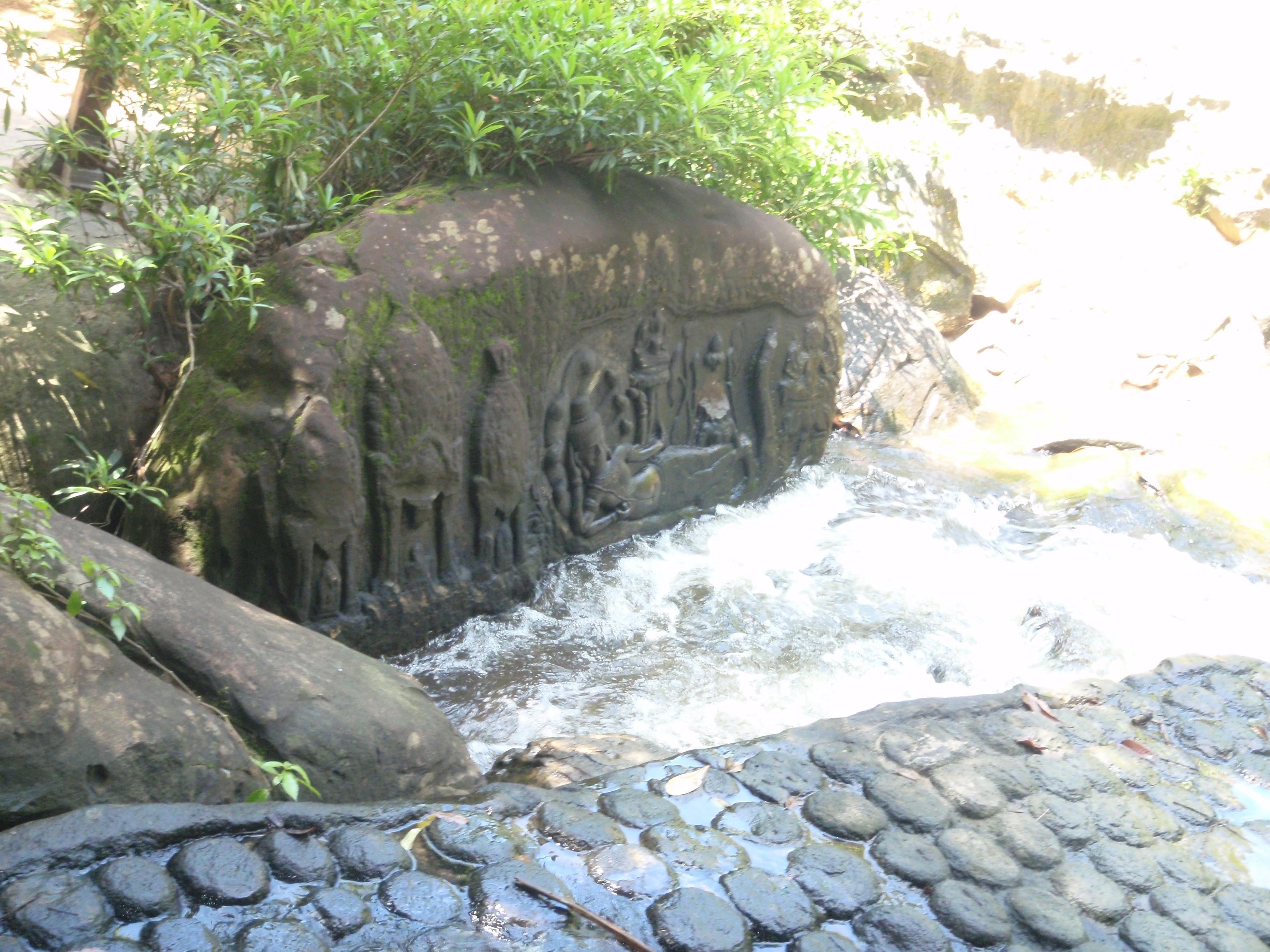 川の中の岩に彫刻