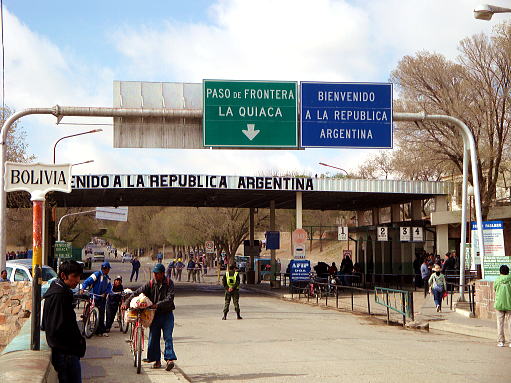 次はアルゼンチン側から見たボリビアへの国境です。国境の真ん中に橋があるのですが、その橋を歩いて国境を越えます。ウユニからの汽車の終着駅、ビジャソンに着くとアルゼンチンの各都市へのバスの客引きが大勢押し寄せます。駅から国境までは歩いていきましたが、結構な距離でちょっと疲れました。それ以前にも、ウユニからの汽車、夜行で約9時間乗ったのですが座席が狭くて疲れました。事前にタフだと聞いていたので、高い座席のきつぷを購入したのですが、期待していた程ではありませんでした。また、汽車の写真を撮り忘れて少し残念です。