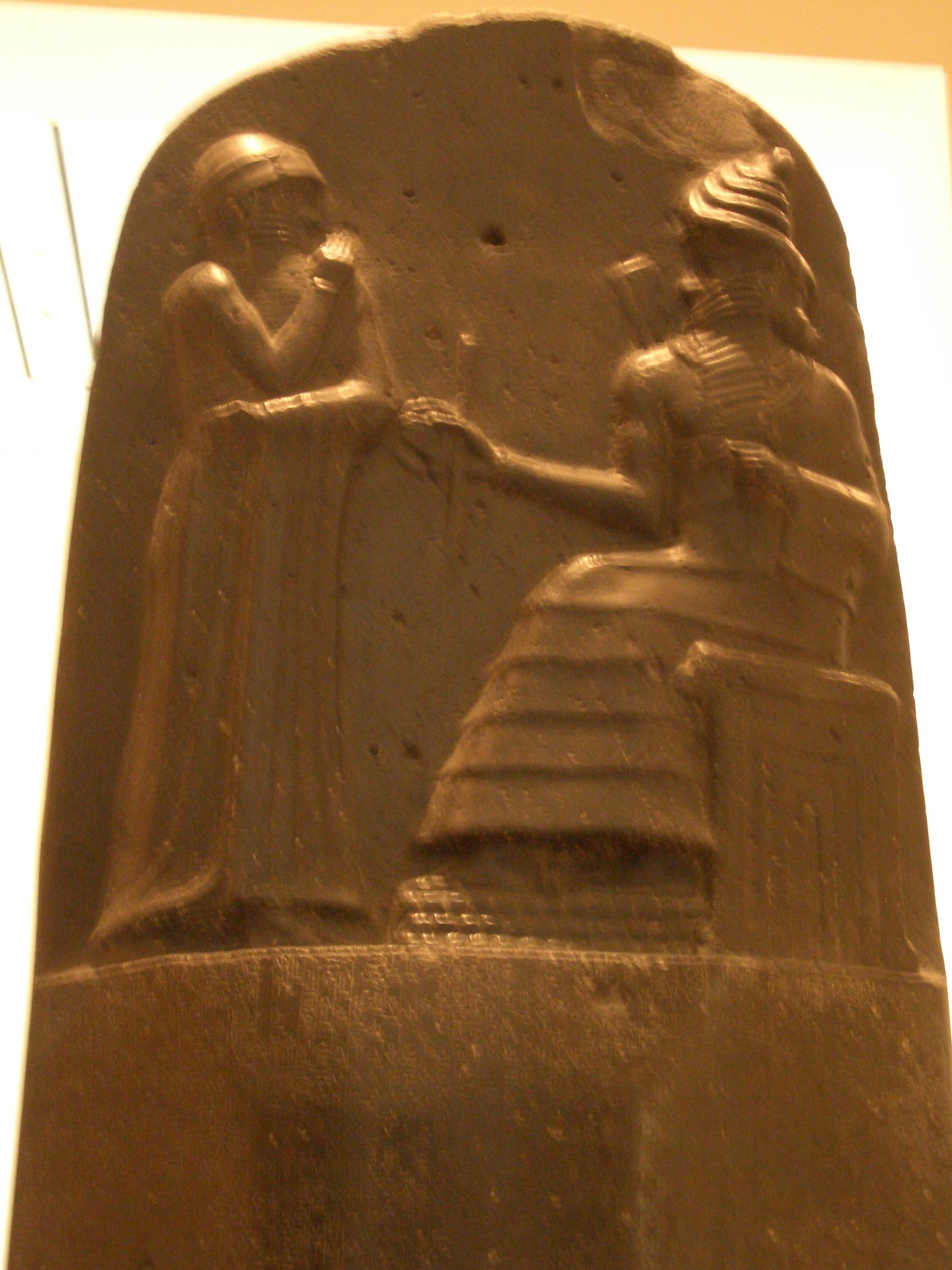 太陽神シャマシュに杖を授与される様子が描かれています。 -