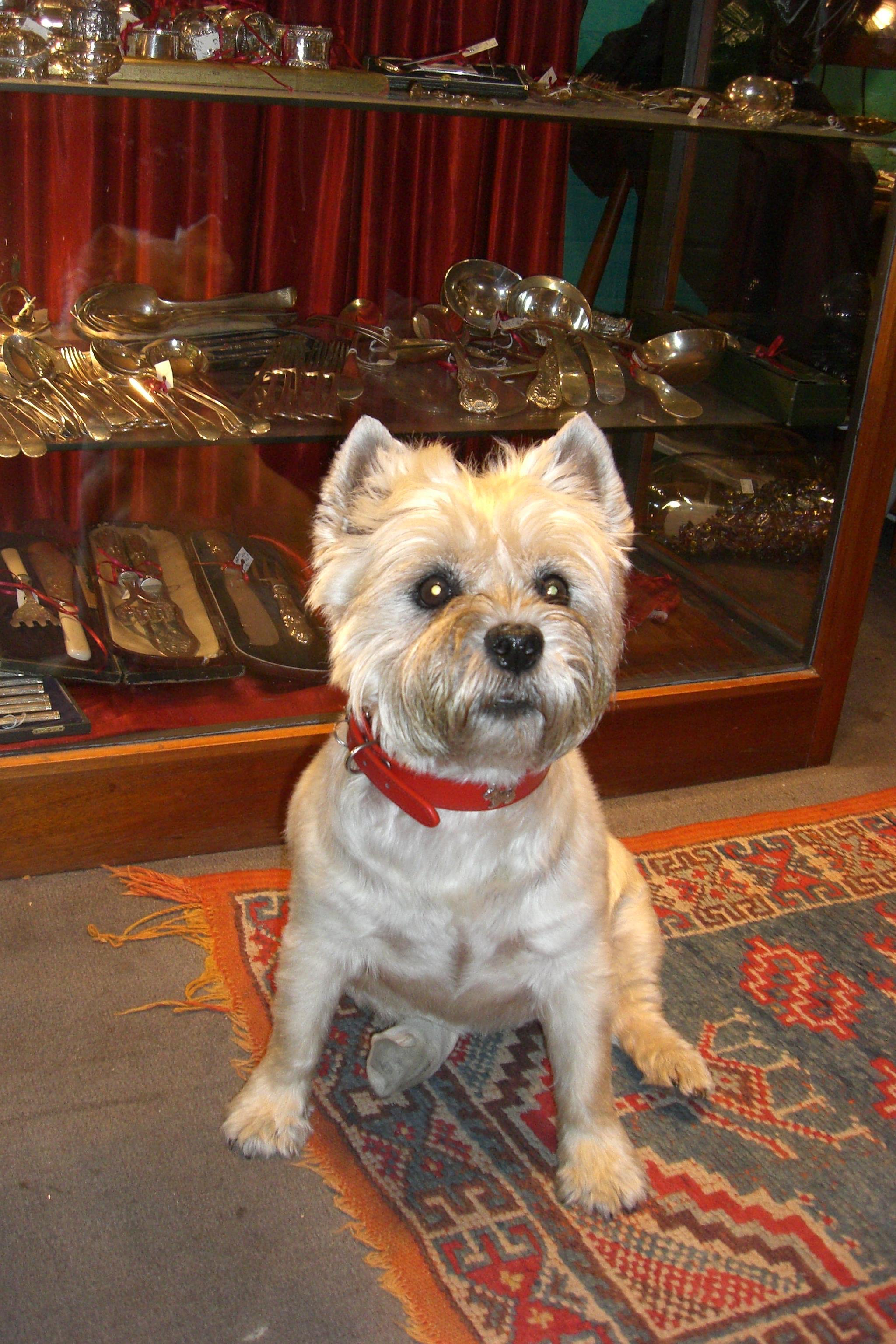 まだ、準備をしている店が多かったのですが気分は最高潮!開いている店で物色中のご主人様を待っているかわいい犬を発見。「とってもかわいい!写真とってもいい?」と聞いたところハンサムなご主人様は笑顔で「ああ、(かわいいのは)知っているよ。いいよ」と答えてくれました。 -