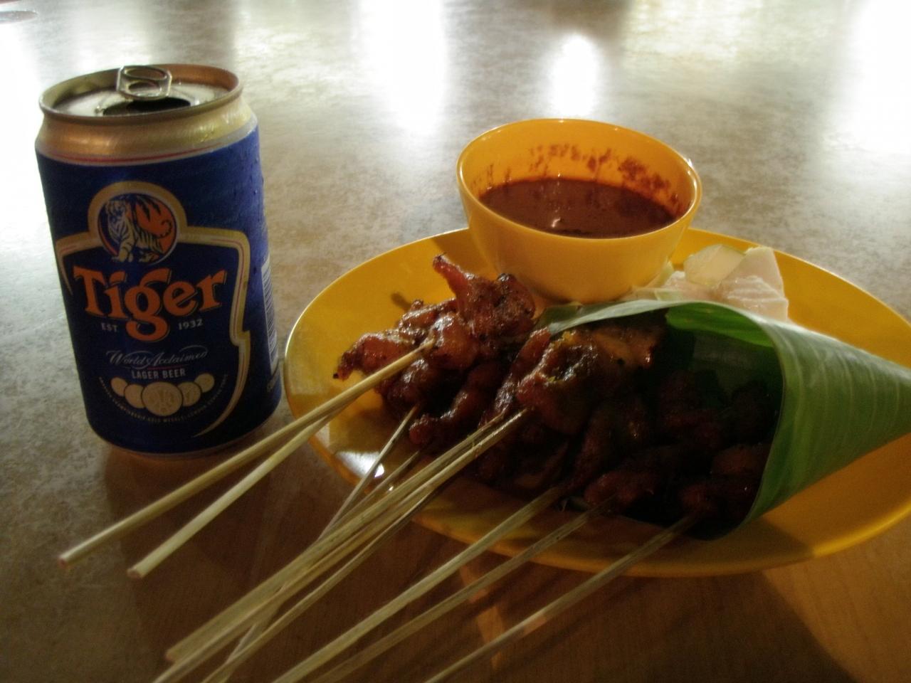 今夜のディナーはサテーとタイガービール♪♪