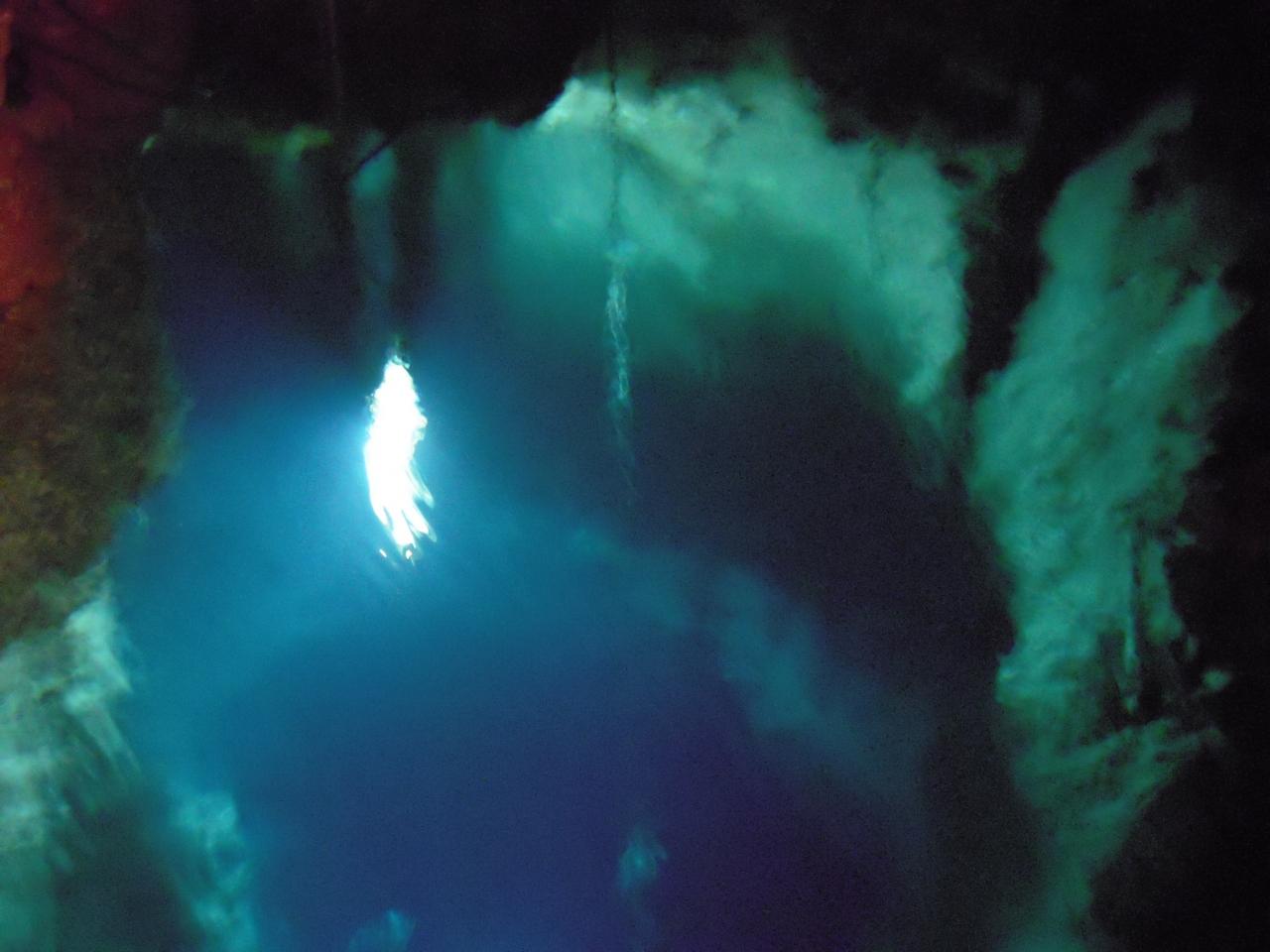 「竜宮の門」の先に、コバルトブルーの地底湖が在ります。