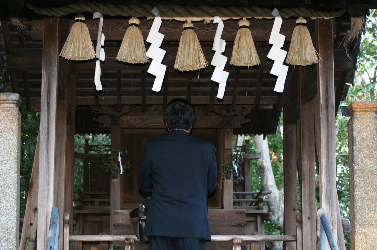 城山八幡宮の境内に祀られている、末社の一つのようです。熱心にお参りする人の姿がありました。