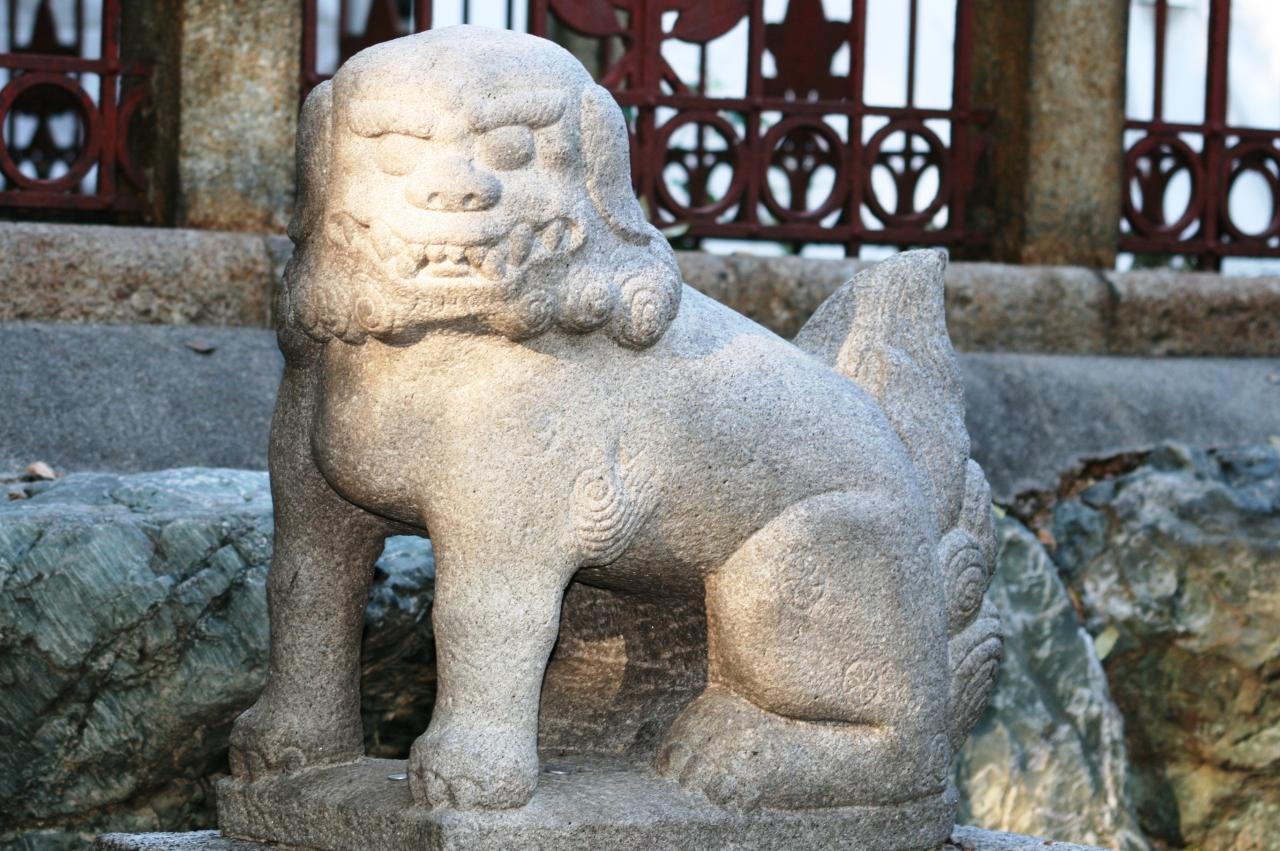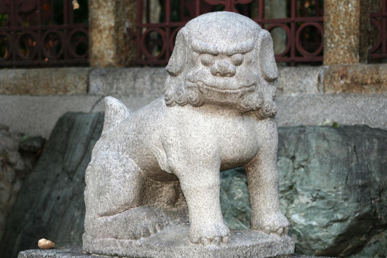 吽形の雌獅子の方です。獅子というより、犬のイメージを感じた、可愛らしい狛犬でした。