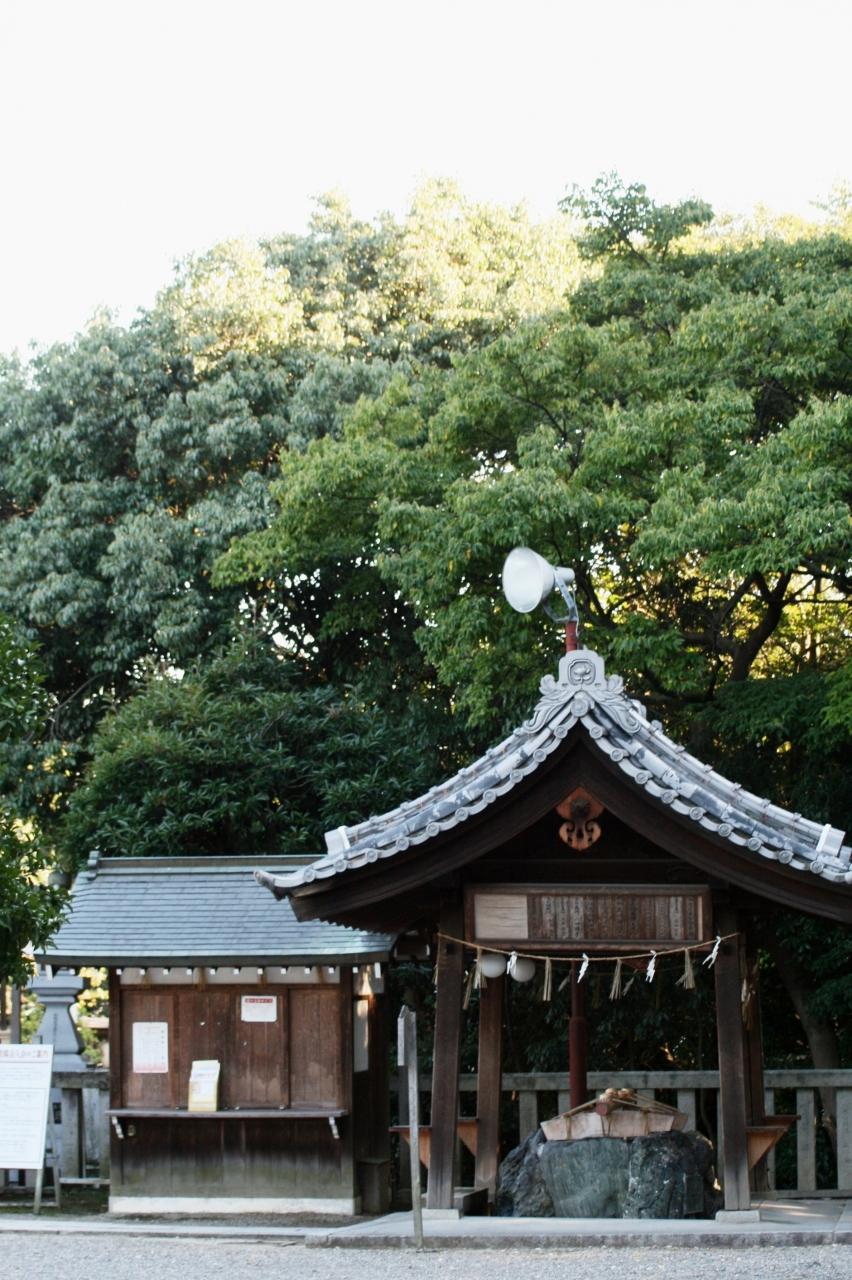 手水舎と、その背後の古木の光景です。『鎮守の杜』の光景です。人工の森には、『森』の字ではなく『杜』の字が使われます。『森』は『盛り』に通じ、自然に生い茂り、盛り上がるものを意味し、『杜』の字源は『守り』、邪気や、盗賊などから、『守る』ために育てられた木々を意味します。
