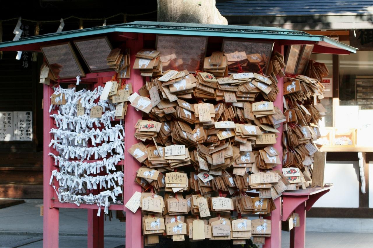 賄いきれずに、はみ出してしまった絵馬とお神籤の光景です。城山八幡宮の公式HPには、この神社の氏子区域は51町の5万2千人と紹介されていましたから、この光景も納得できます。
