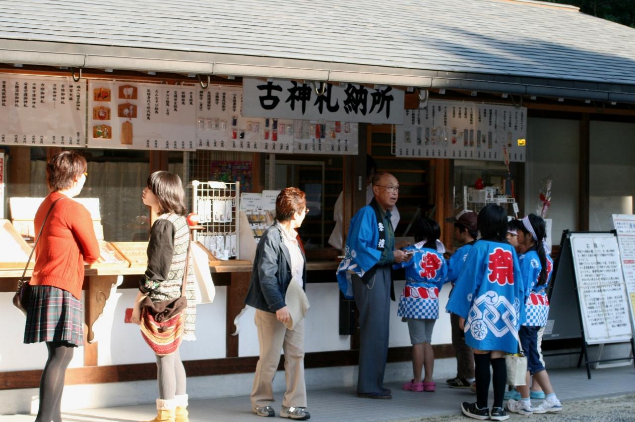 お祭り前のためでしょうか、賑わっていた社務所の前の光景です。お祭りの法被姿のお子さん達もいました。