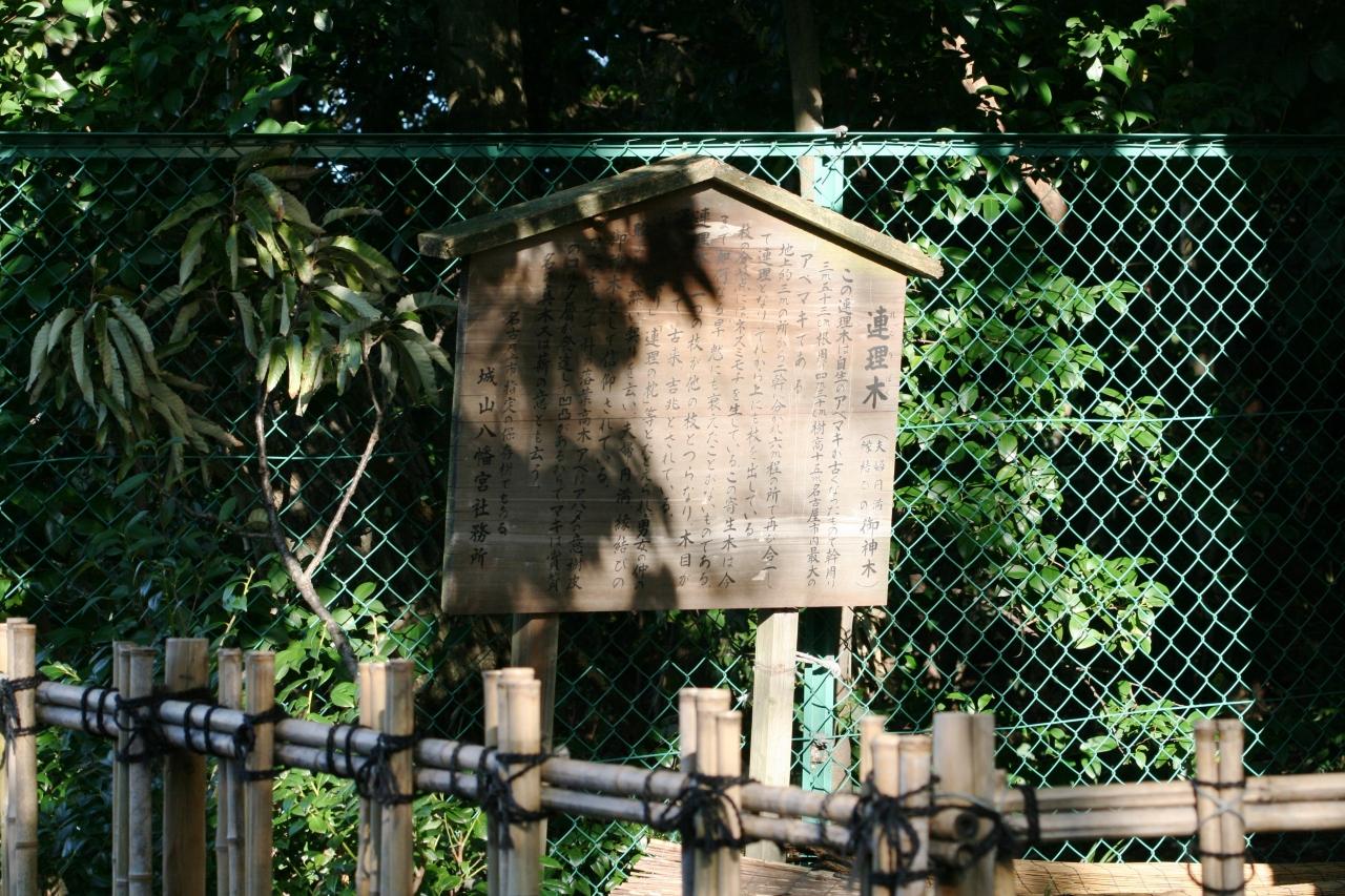 『城山八幡宮略記』のタイトルがあった立看板です。祀られている八柱と沿革などが紹介されていました。